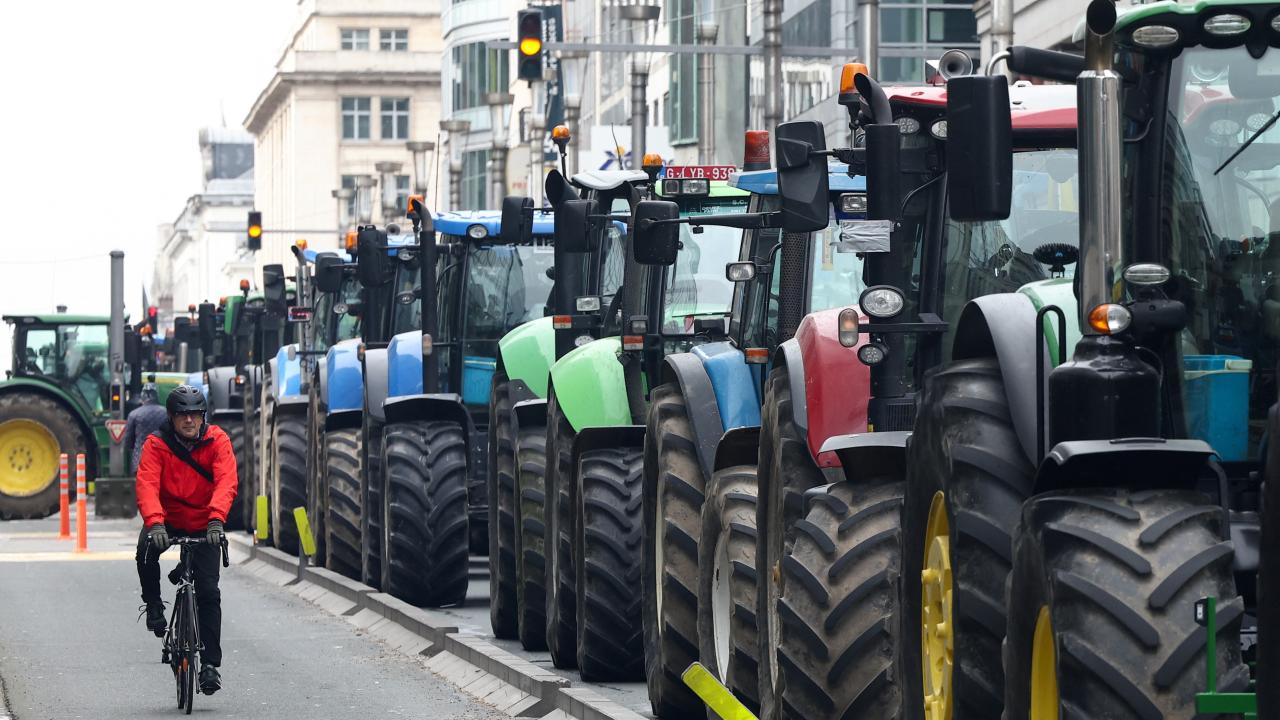 Belçika`daki çeşitli çiftçi birliklerinin çağrısıyla yüzlerce çiftçi traktörleriyle Brüksel`deki AB Komisyonu, AB Konseyi ve Avrupa Parlamentosu binaları yakınında bir araya geldi.