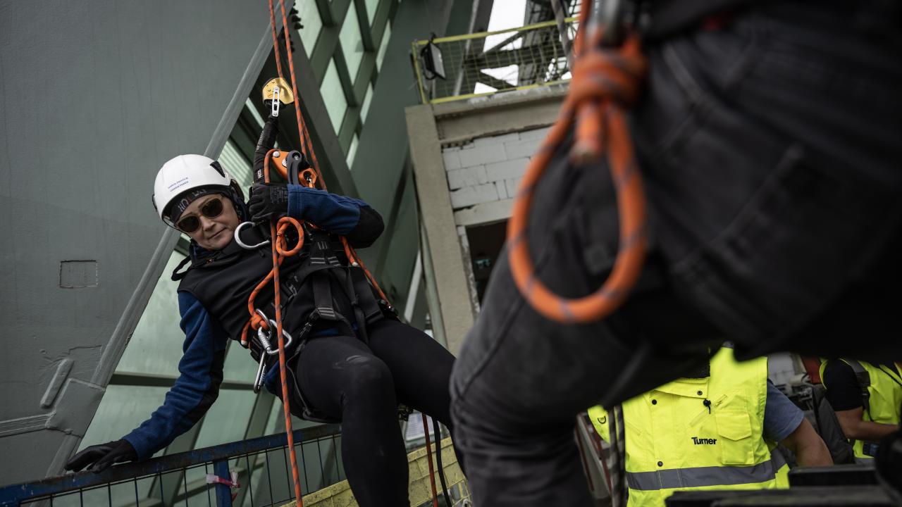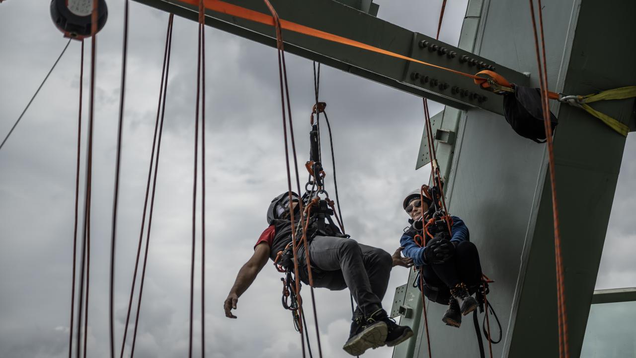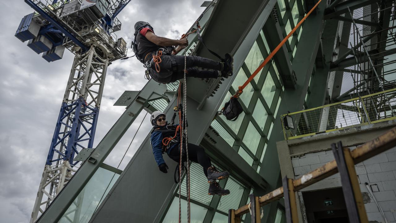 Dağcılarımız kendilerini cephelerden sarkıtarak çalıştıklarını dile getiren Doğu, "Hava şartları bunu birebir ilgilendiriyor. Bu özverili çalışmalarla beraber toplam panellerimizin hepsini bitirerek kısa sürede binamızı teslim etmek için aktif bir şekilde çalışmaktayız." dedi.