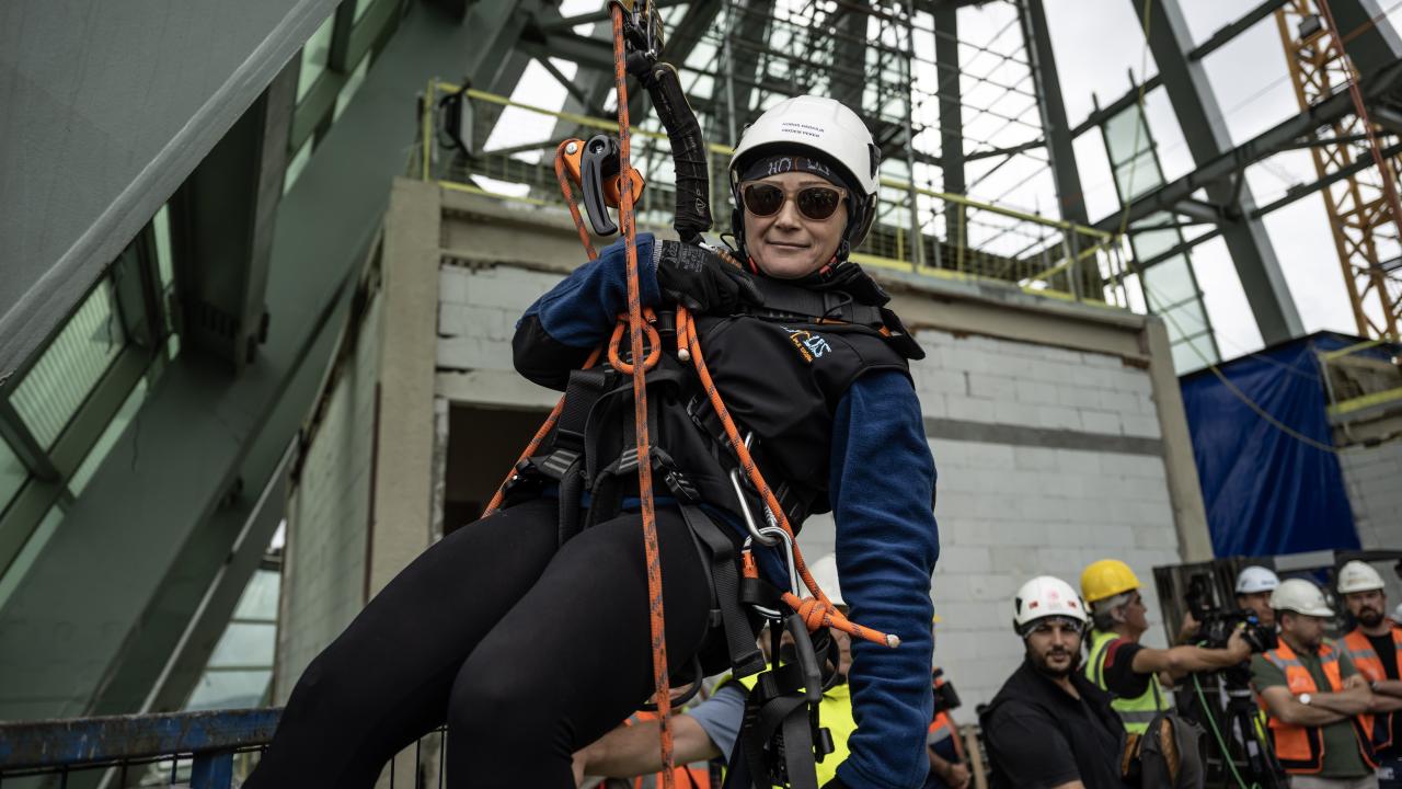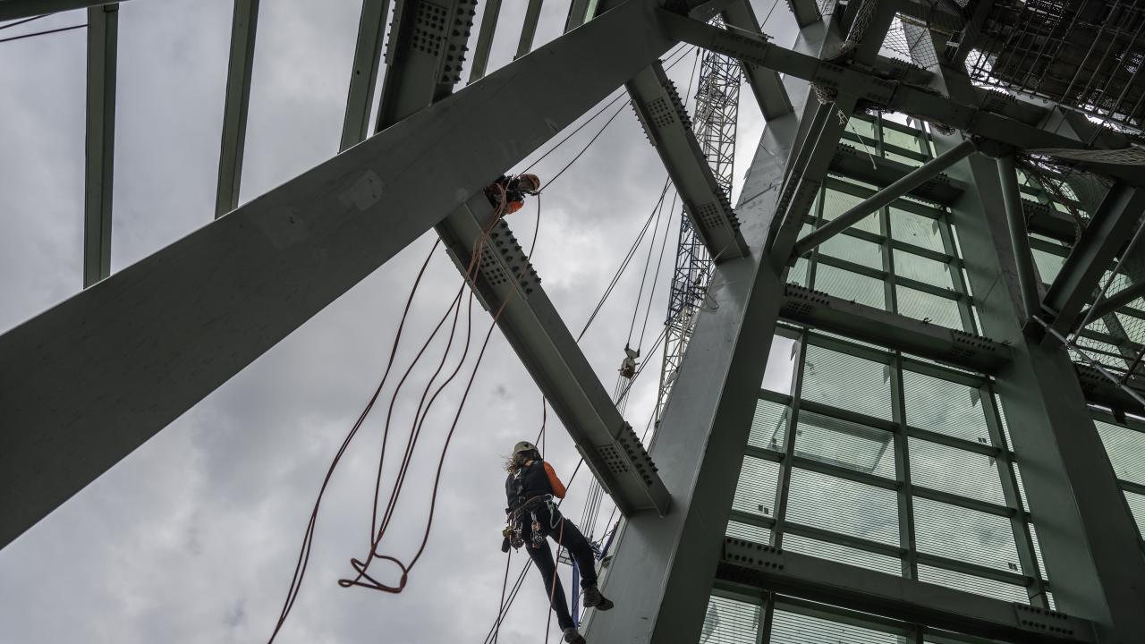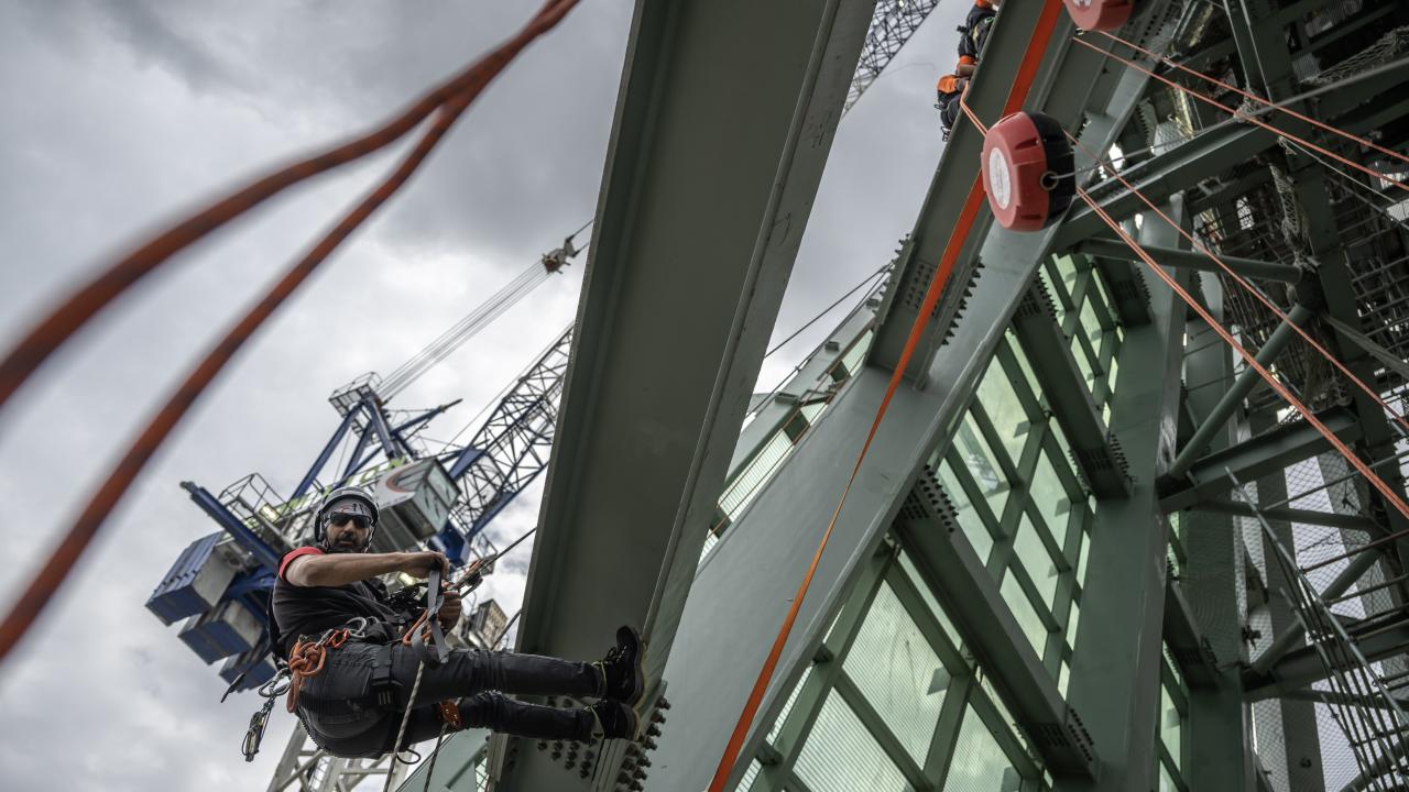 Avrupa'nın en yüksek binası Merkez Bankası'nın çatısını dağcı ekipler kuruyor