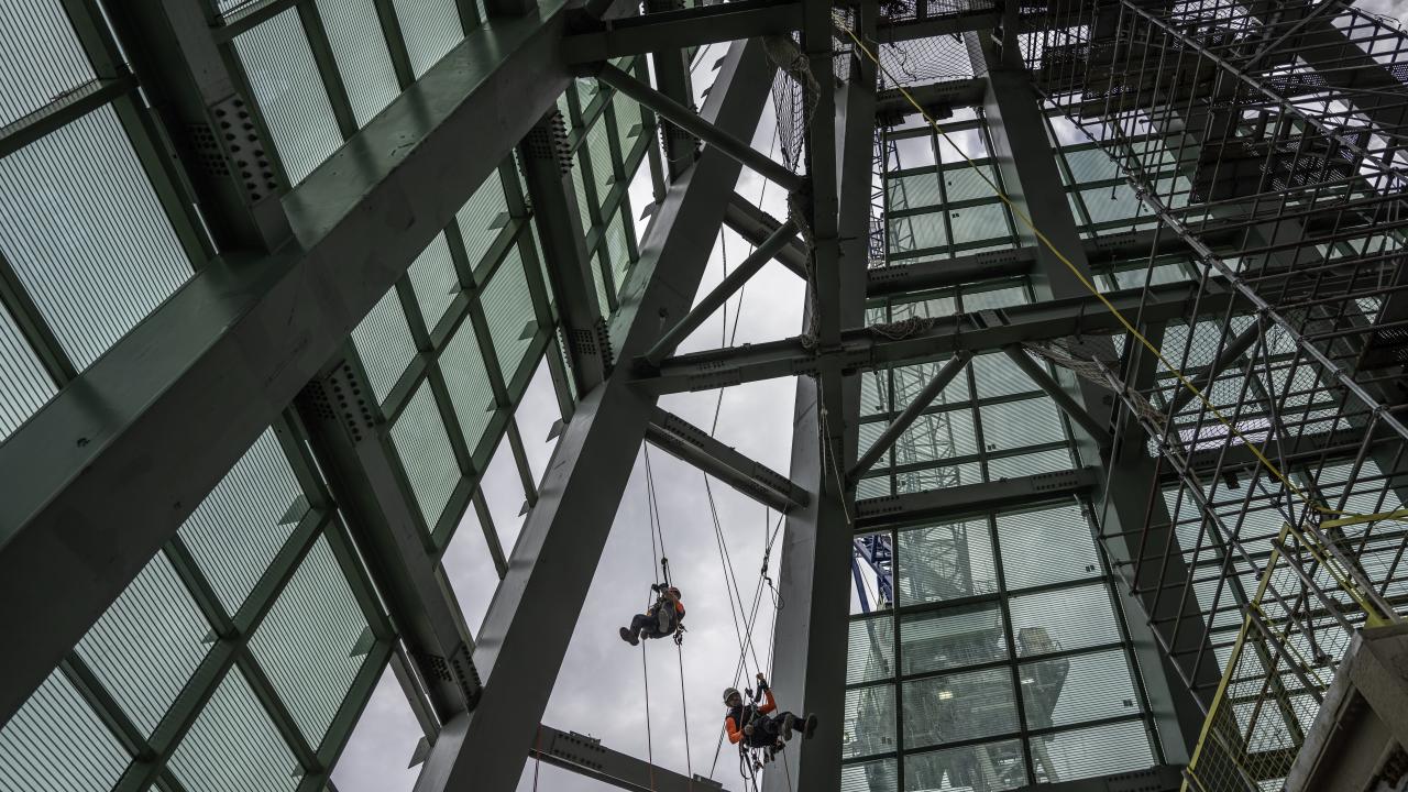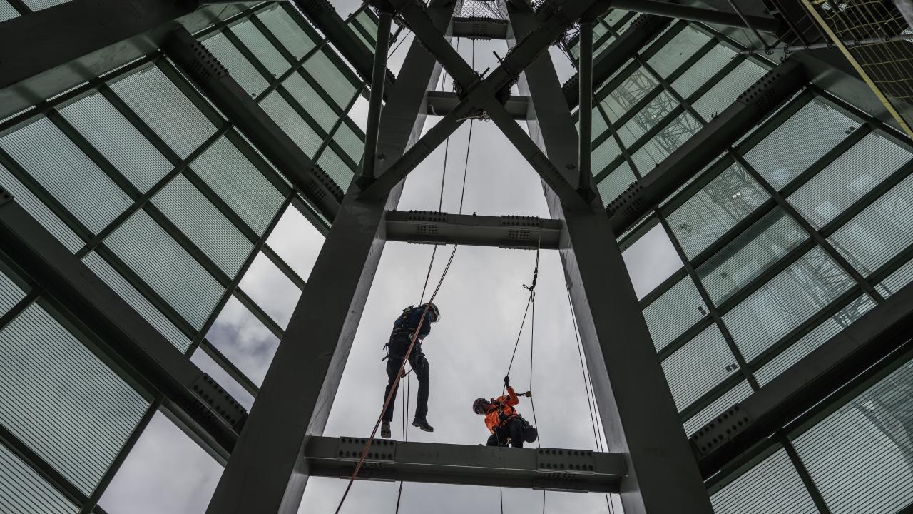 İstanbul Finans Merkezi'nde yer alan ve Avrupa'nın en yüksek binası olma özelliğini taşıyan, 353 metre uzunluğundaki 72 katlı Türkiye Cumhuriyet Merkez Bankası'nın (TCMB) çatısının cam montajı, alanında uzman 40 kişilik ekip tarafından yapılıyor.