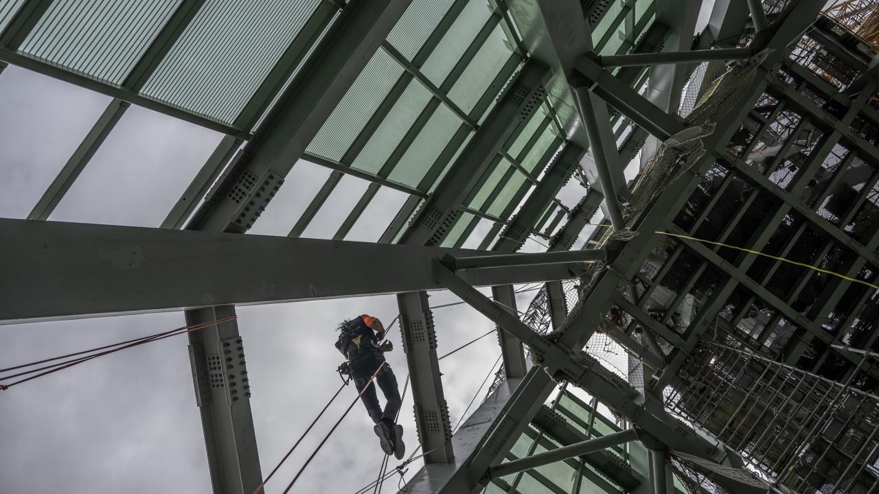 Söz konusu çalışmalar kapsamında çatı bölümlerinin yerleştirilmesine başlandı. Alanında uzman, 40 kişilik mühendis ve dağcılardan oluşan ekipçe yürütülen çalışmalarda, çatının cam montajları yapıldı.