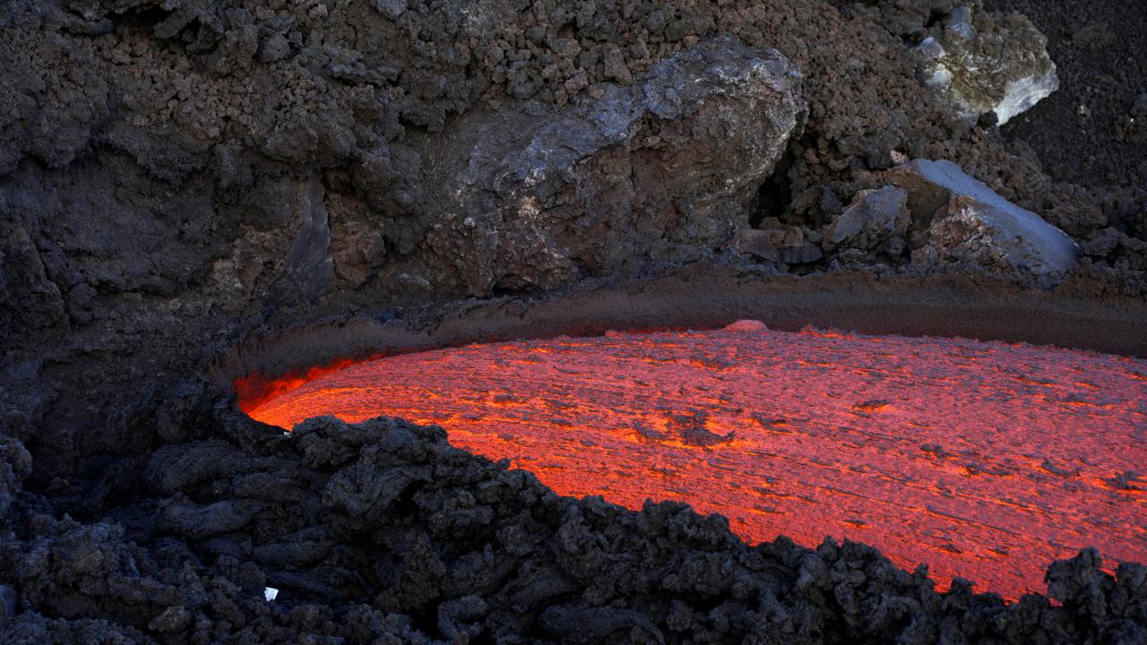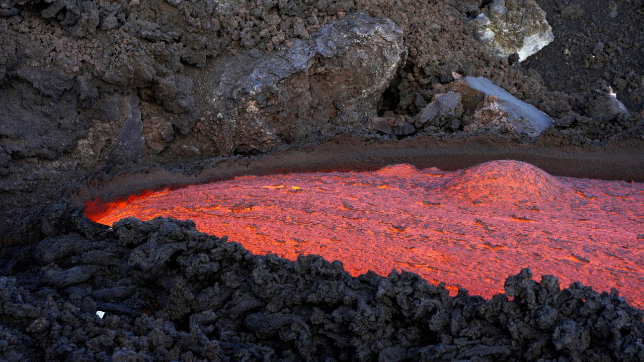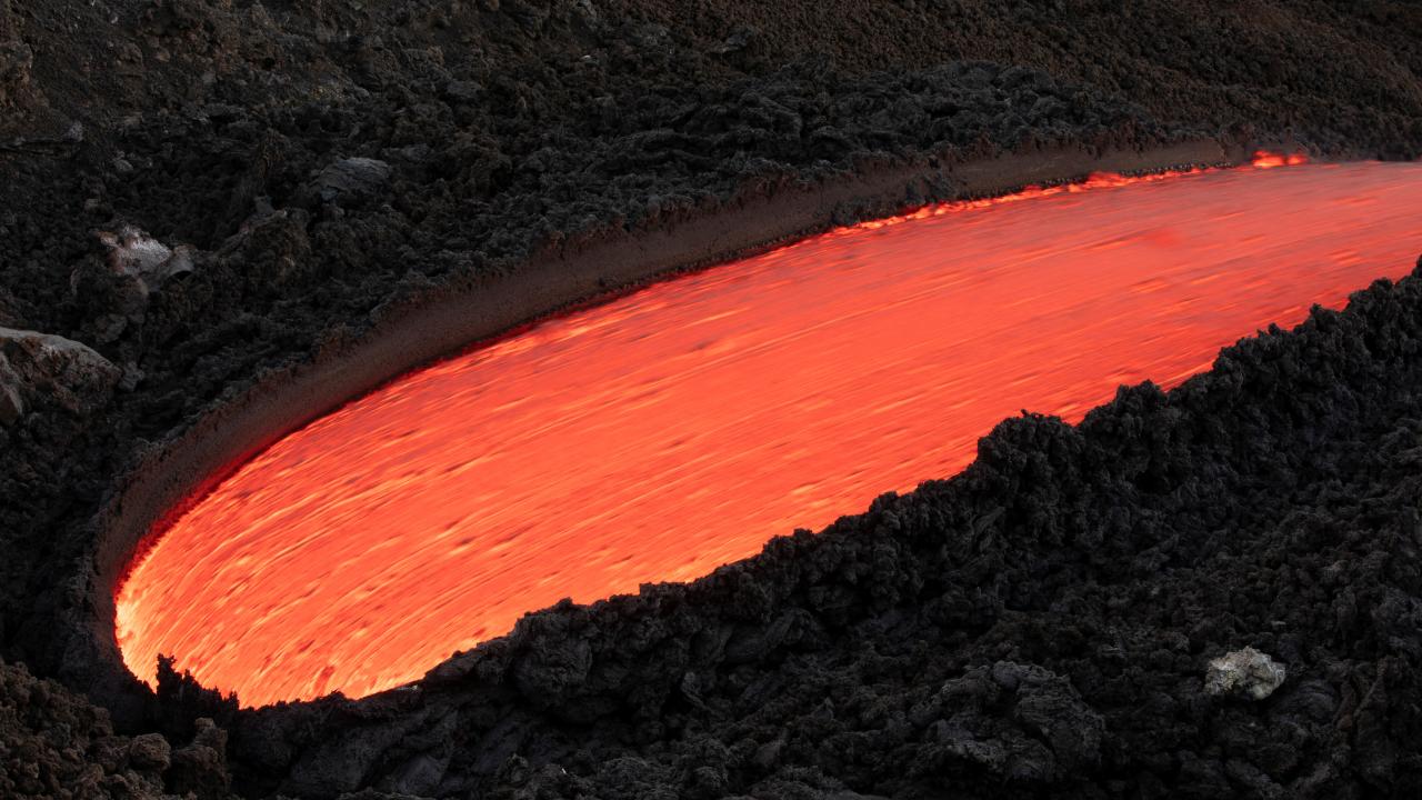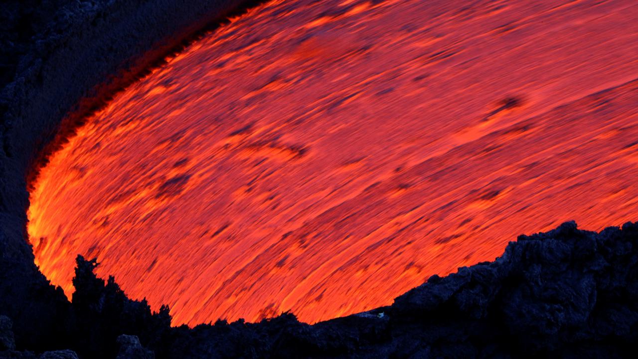 Etna Yanardağı'nda görülen volkanik faaliyet sonrası yanardağın güneydoğu kraterinden uzun kırmızı-sıcak lav akıntıları akıyor.