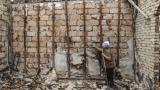 Ukraynalı kadın yıkılan evinin enkazını terk etmiyor
