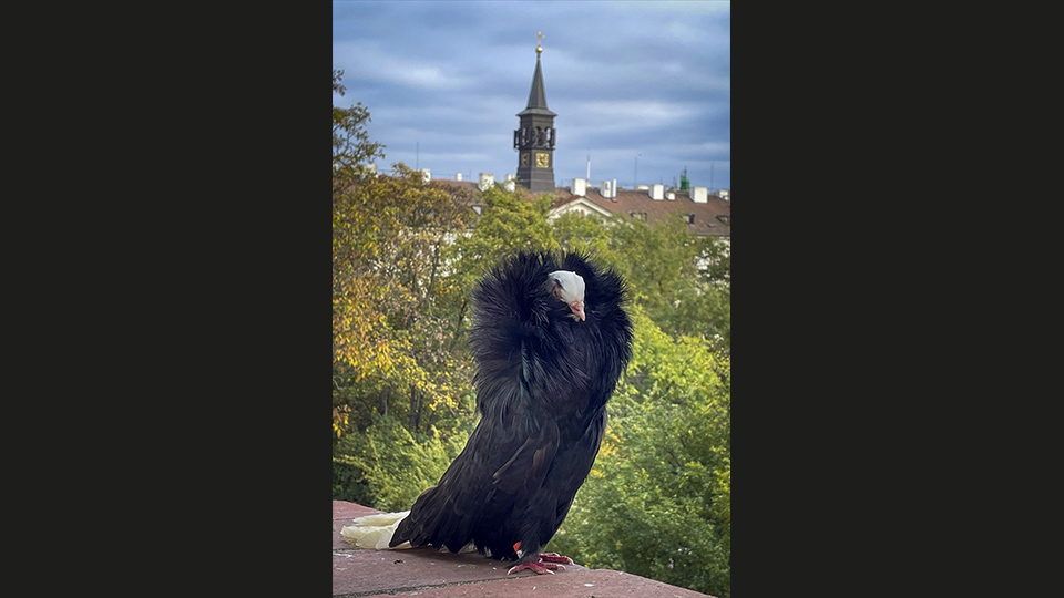 Prag Kalesi`nin duvarında bulunan bir güvercin, ziyaretçilerin ilgisini çekti.