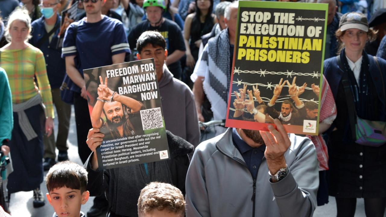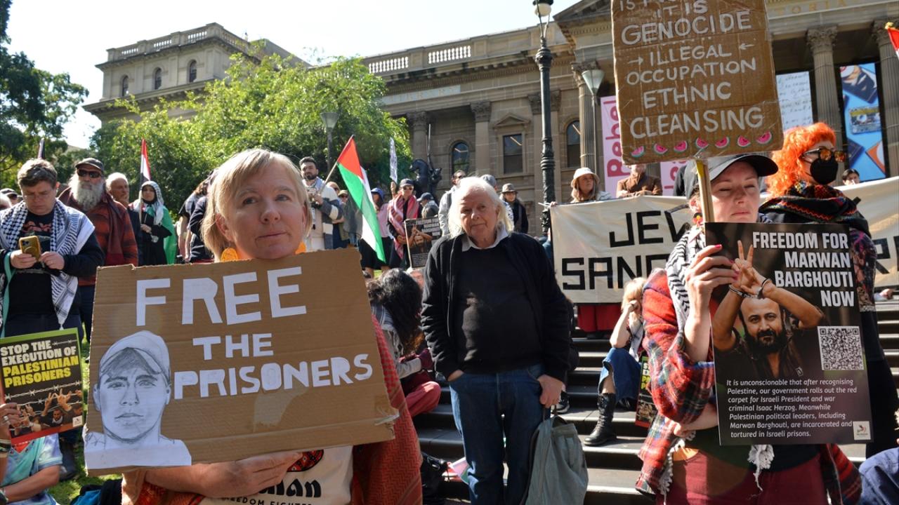 Avustralya'nın Melbourne kentinde `Filistinli Esirler Günü` dolayısıyla toplanan göstericiler, İsrail'in Filistinli esirlere yönelik idam cezasını öngören yasasını protesto etti.