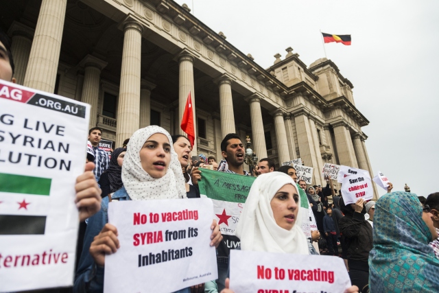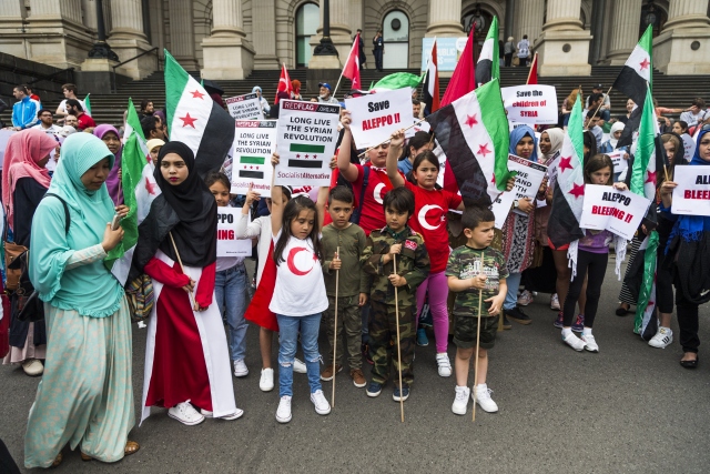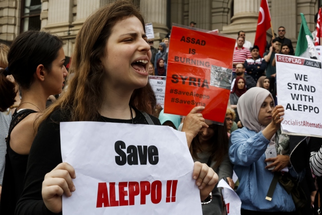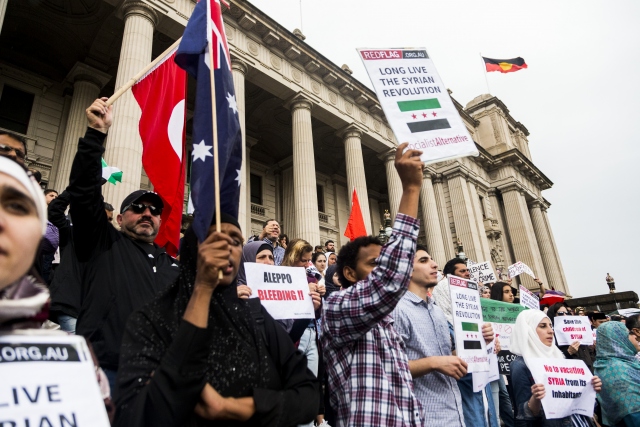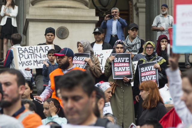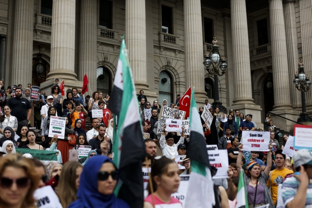 Suriye’nin Halep kentinde sivil katliamı Avustralya'nın Melbourne kentinde protesto edildi. Melbourne kent merkezindeki Victoria Eyalet Parlamentosu önünde yüzlerce Avustralyalı Halep’te sivillere yönelik saldırıları kınamak üzere bir araya geldi.