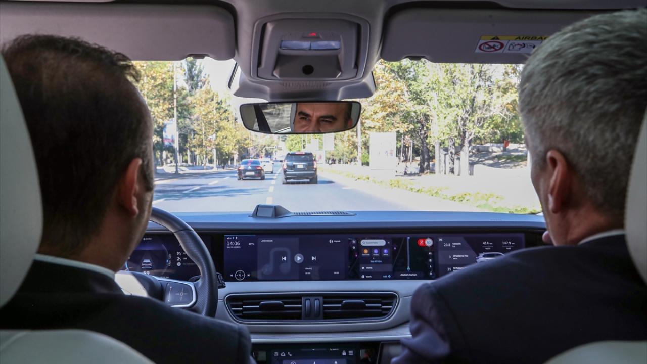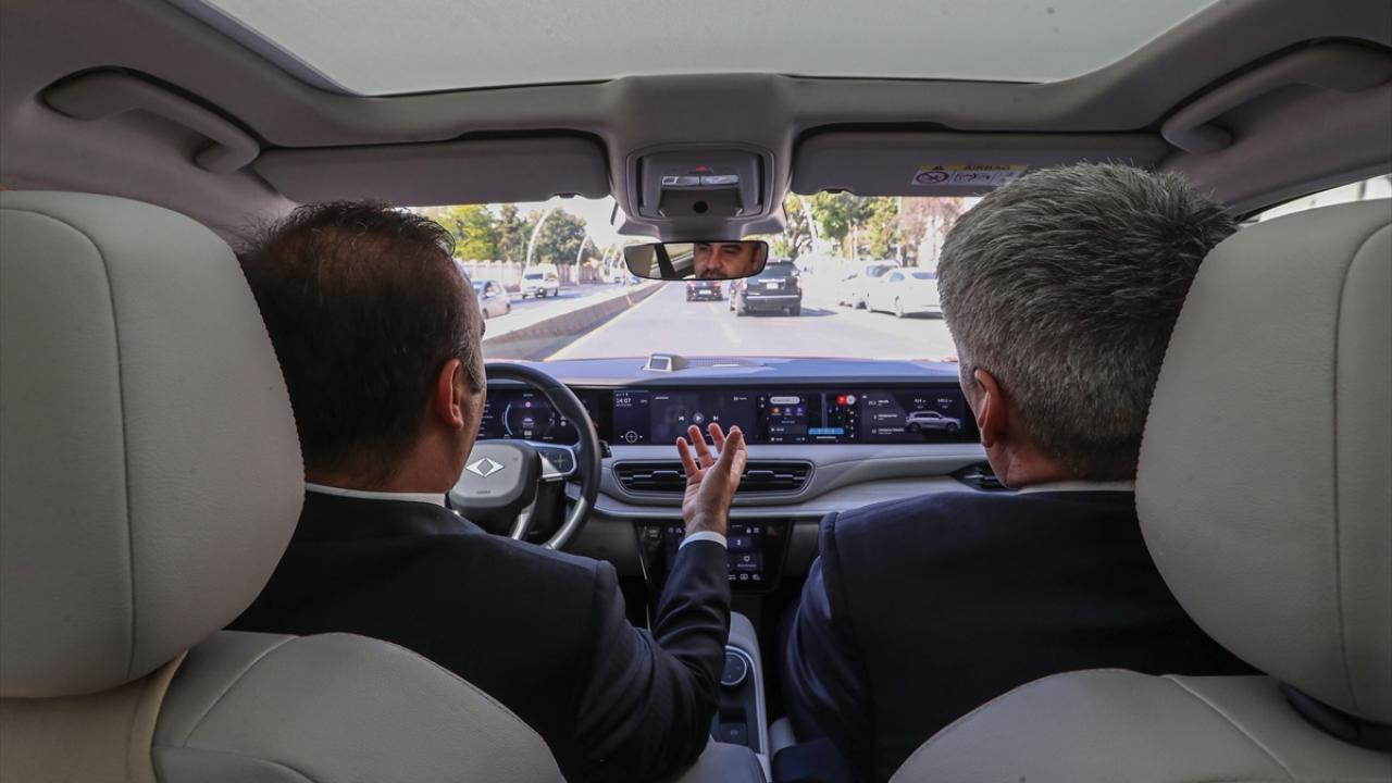 Kacır direksiyon başına geçerken, Nehammer de yanına oturdu. Bakan Kacır, Togg`u ilk kez deneyimleyen Nehammer`e akıllı cihazın özellikleri hakkında bilgi verdi.
