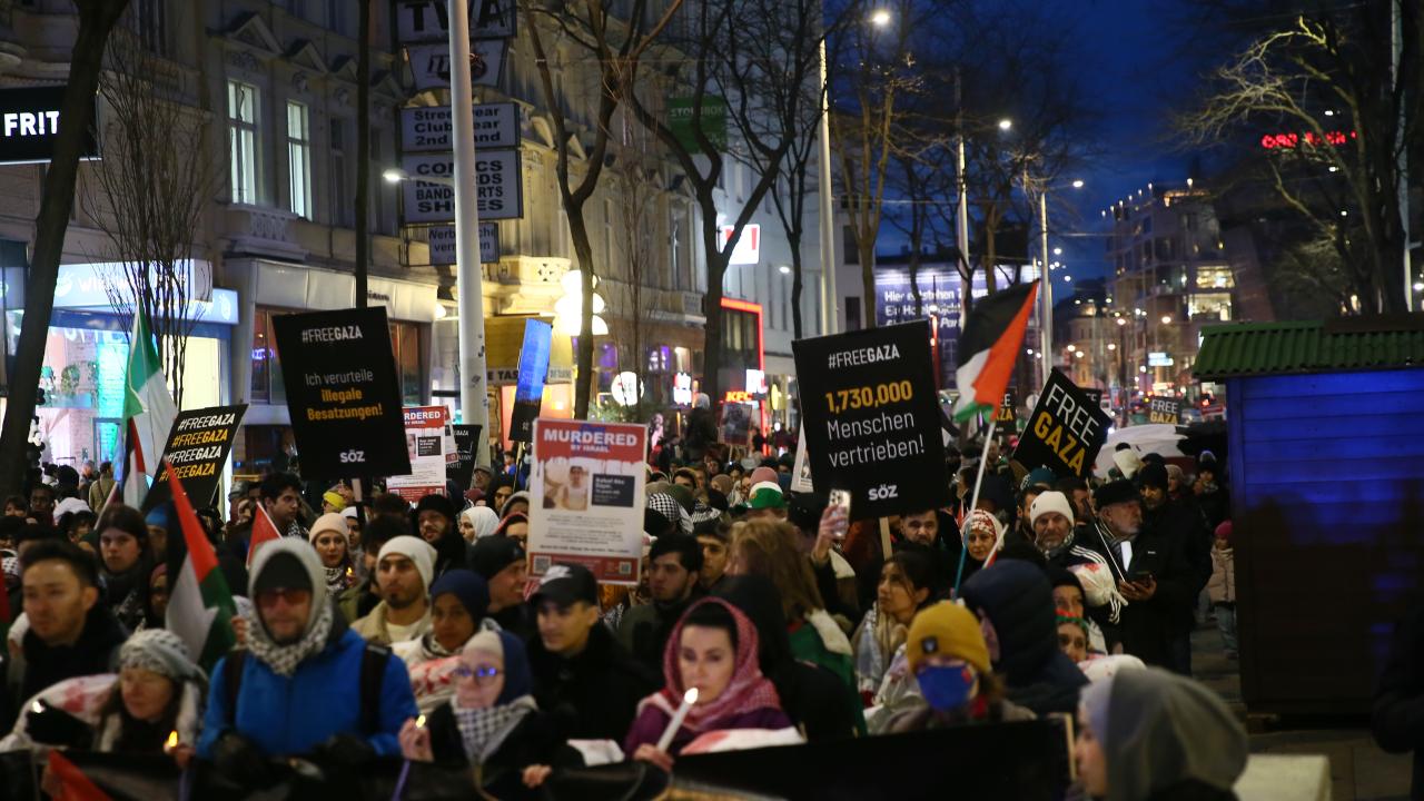 Avusturya’nın başkenti Viyana’da İsrail’in Gazze'ye yönelik saldırıları sonucunda hayatını kaybeden 31 bine yakın Filistinli için "hüzün yürüyüşü" düzenlendi.
