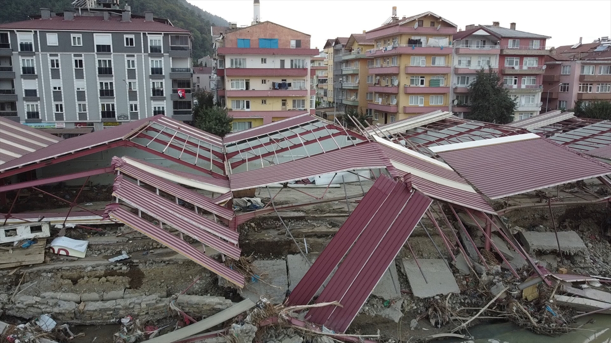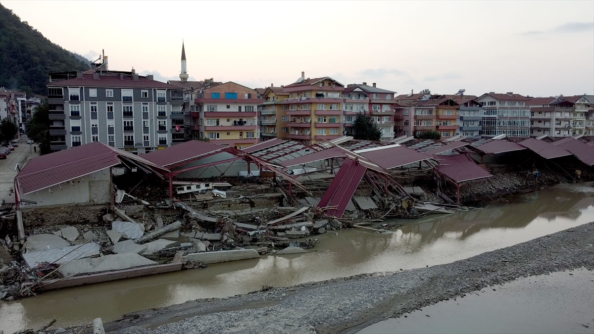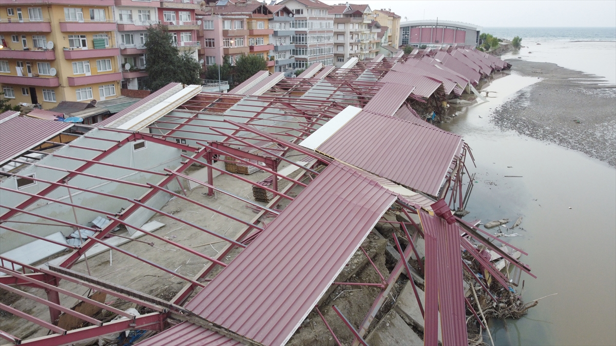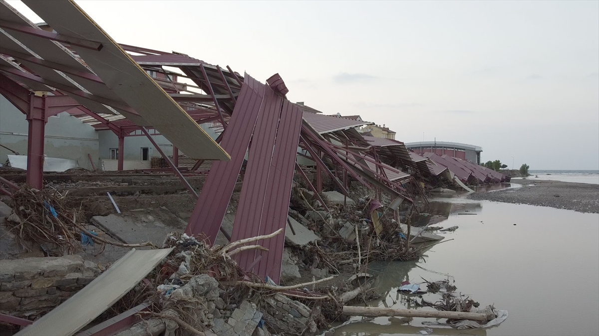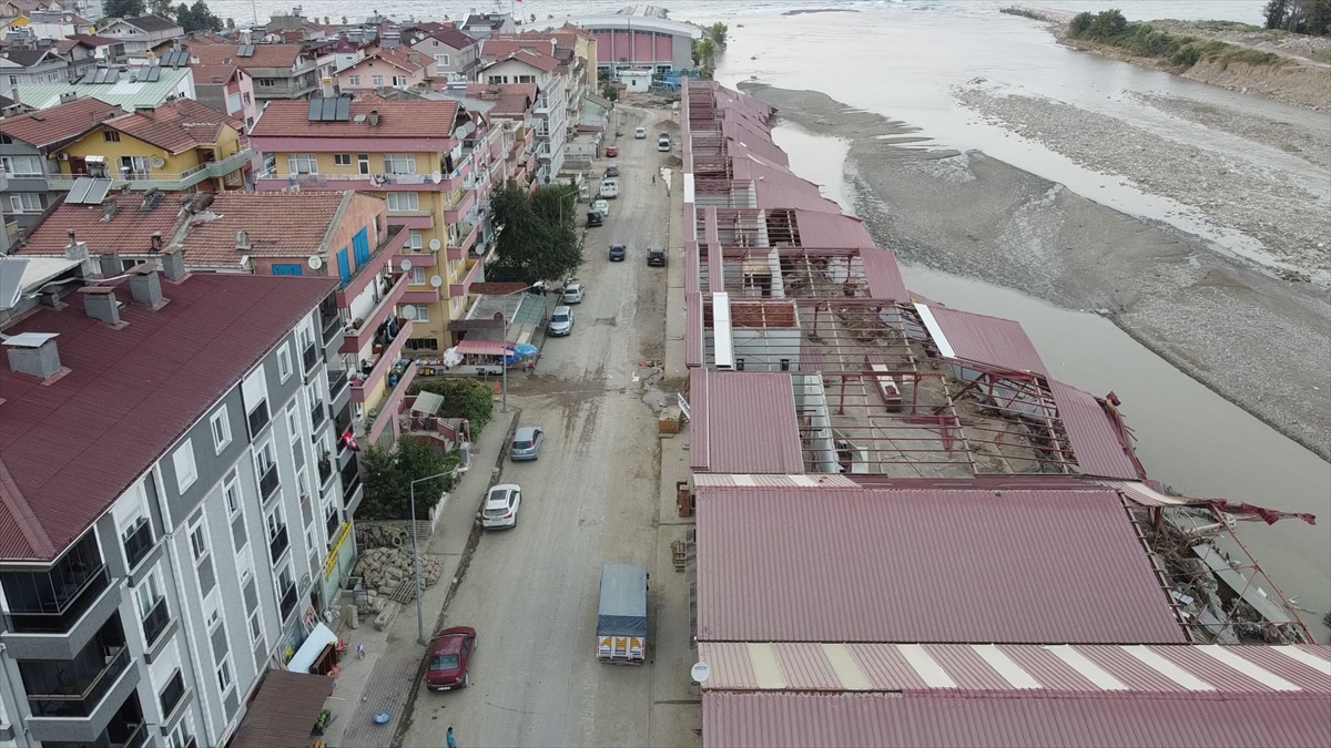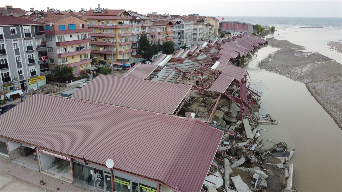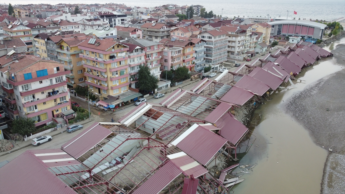 Sinop'un Ayancık ilçesinde sel felaketinden etkilenen kapalı pazar yerindeki tüm dükkanlar yıkılmak üzere tahliye edildi.