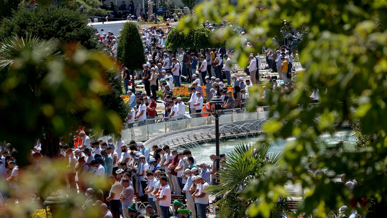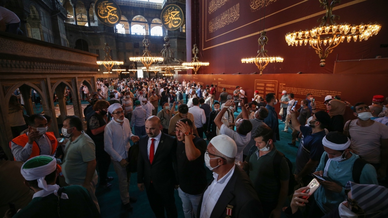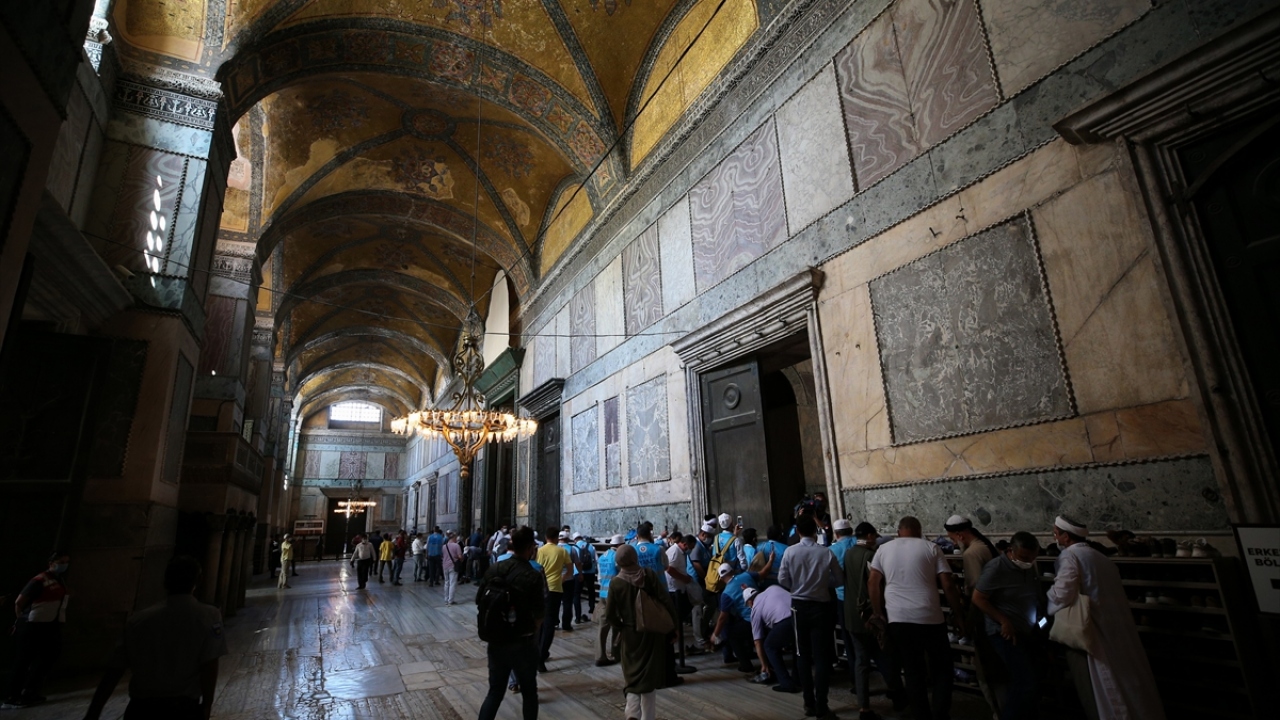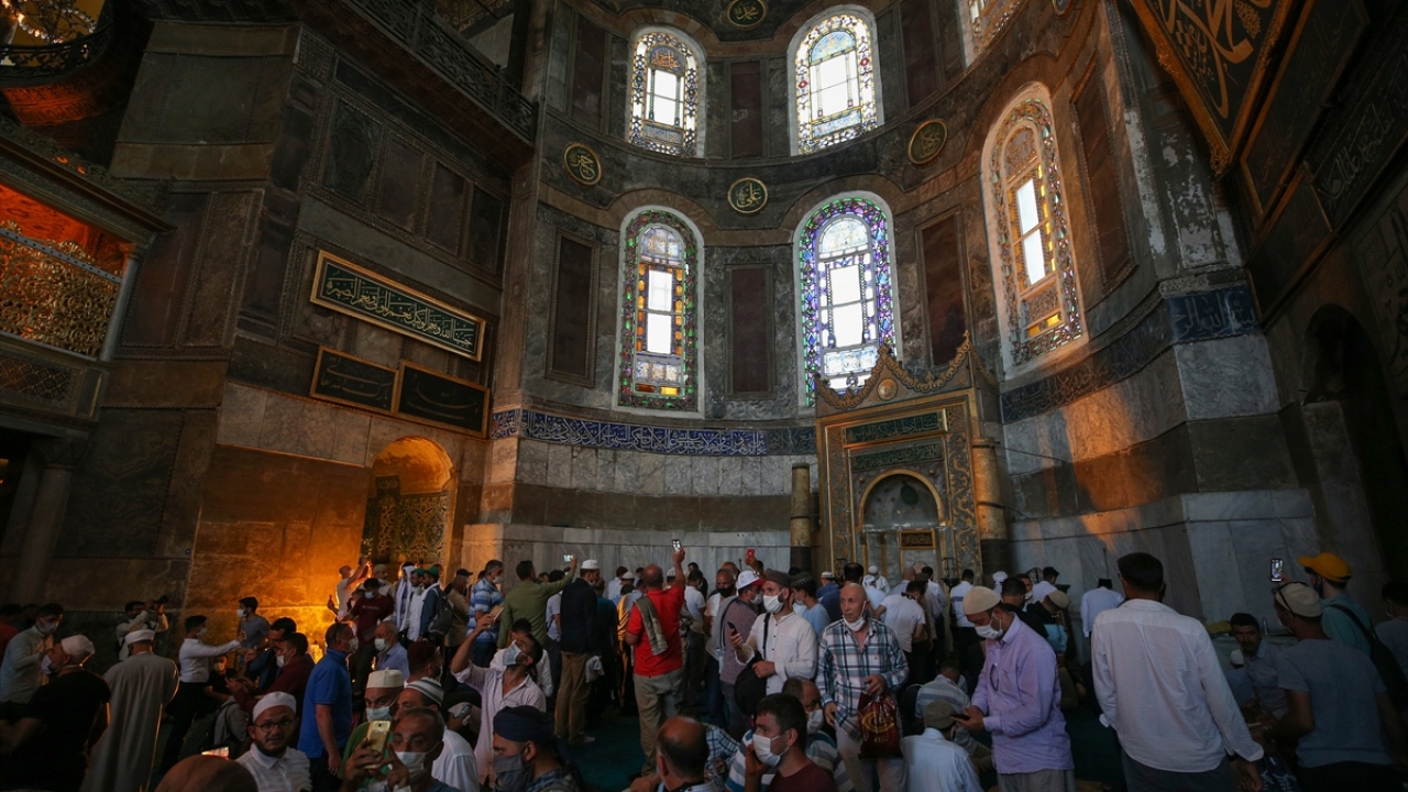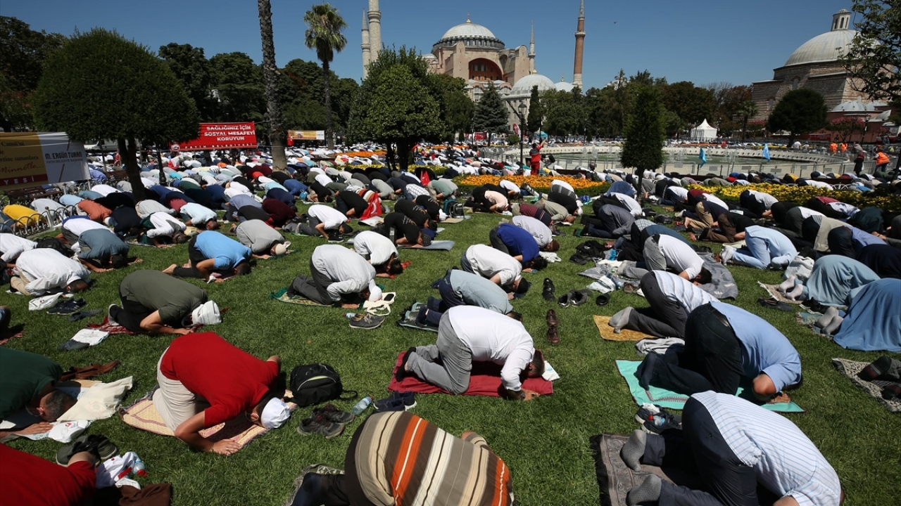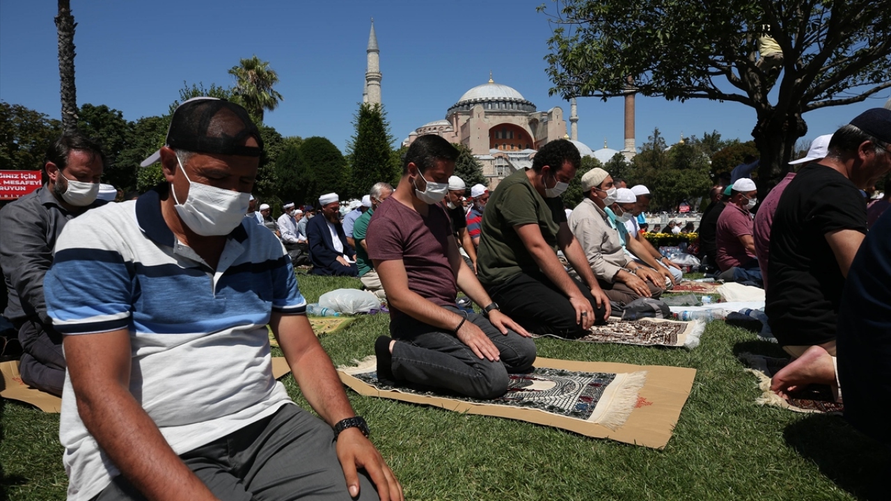 Cumhurbaşkanı Recep Tayyip Erdoğan, saat 12.00 sıralarında Ayasofya Meydanı`na gelmesinin ardından camiye giriş yaptı.
