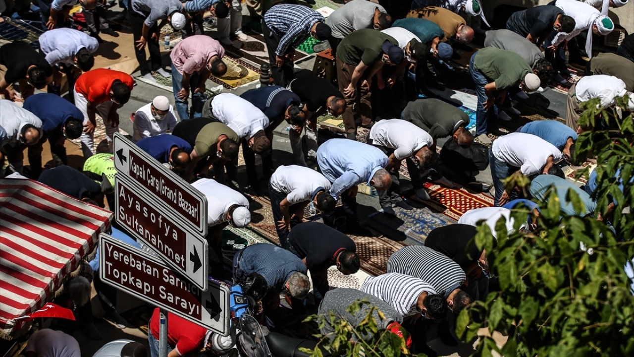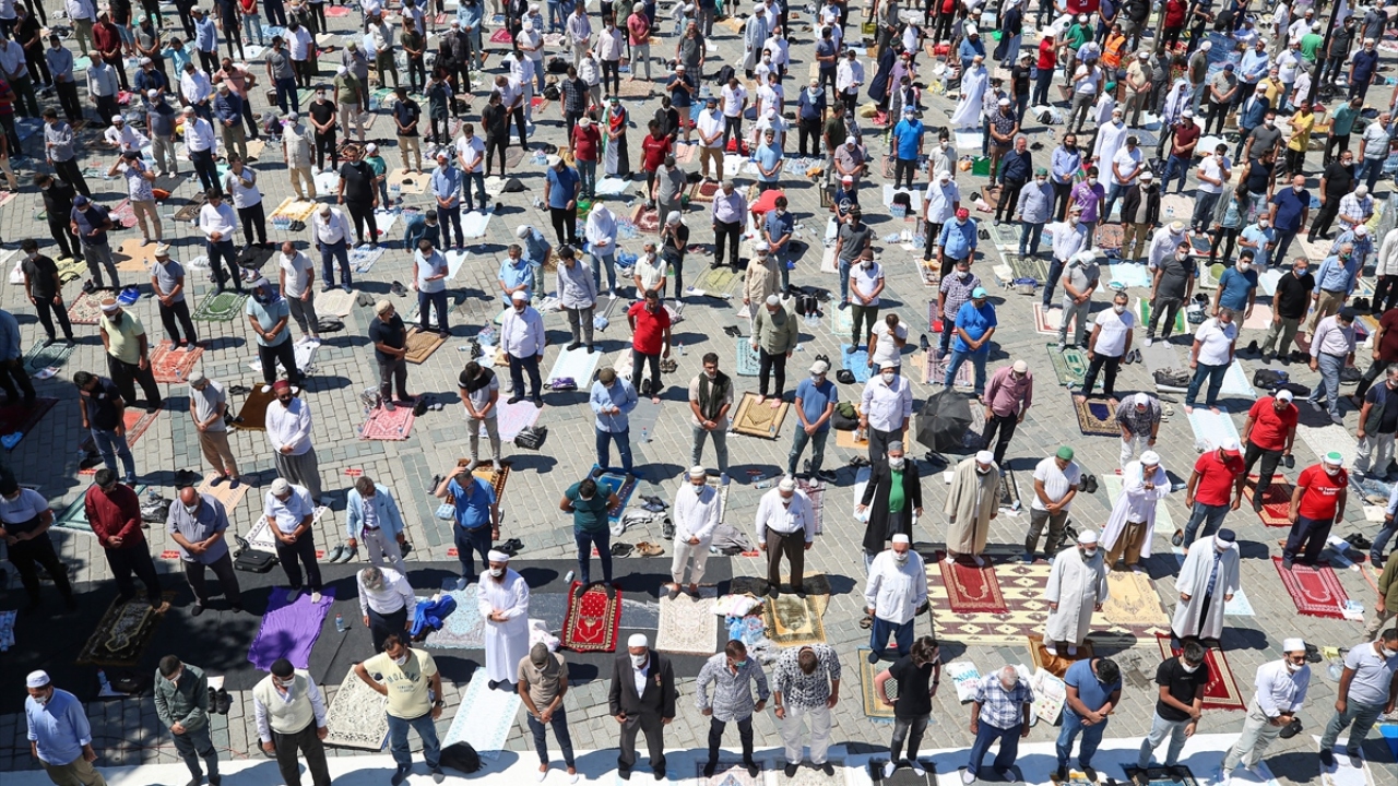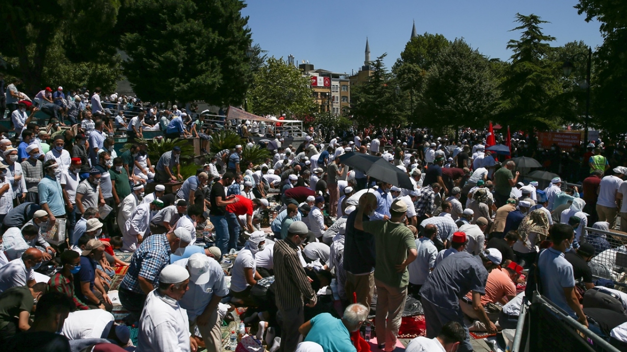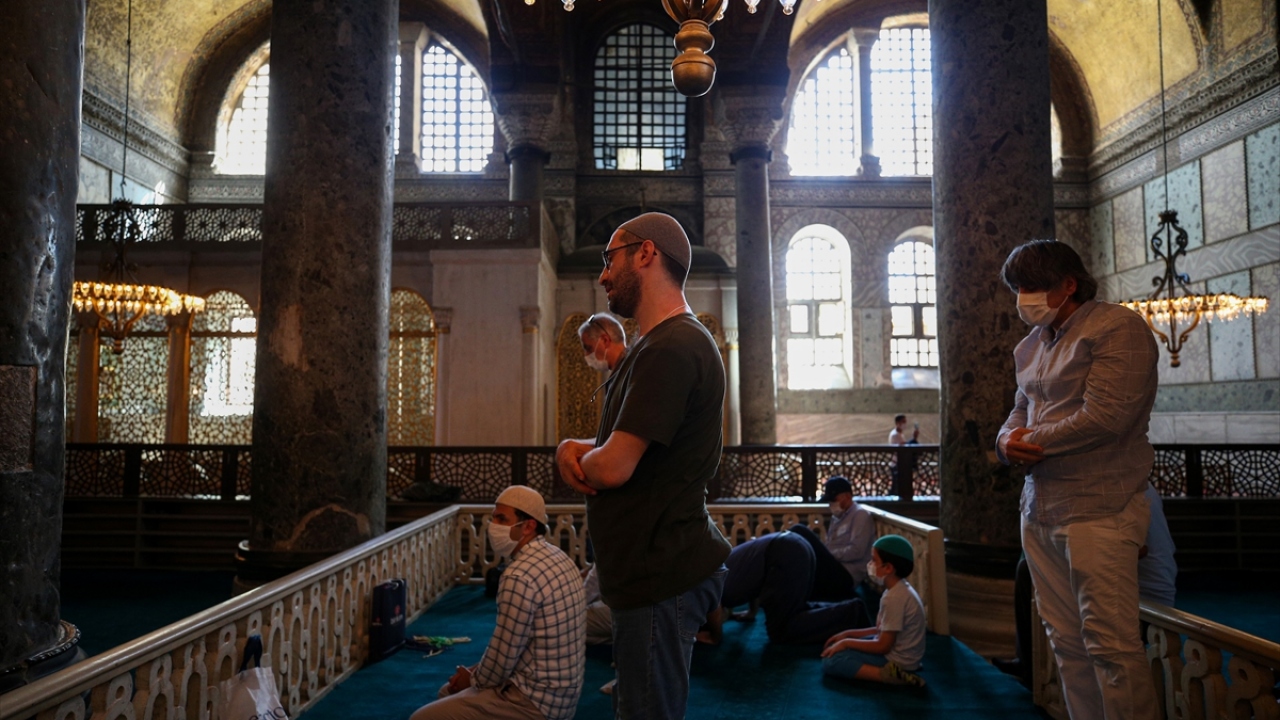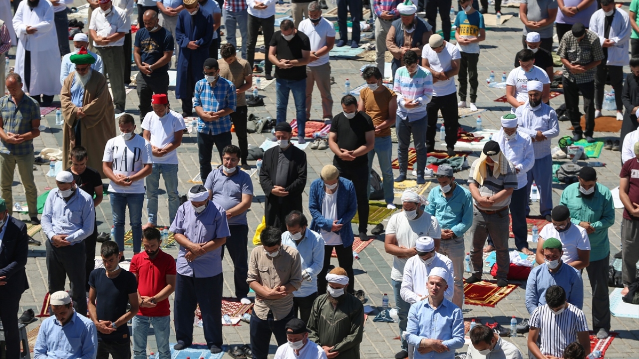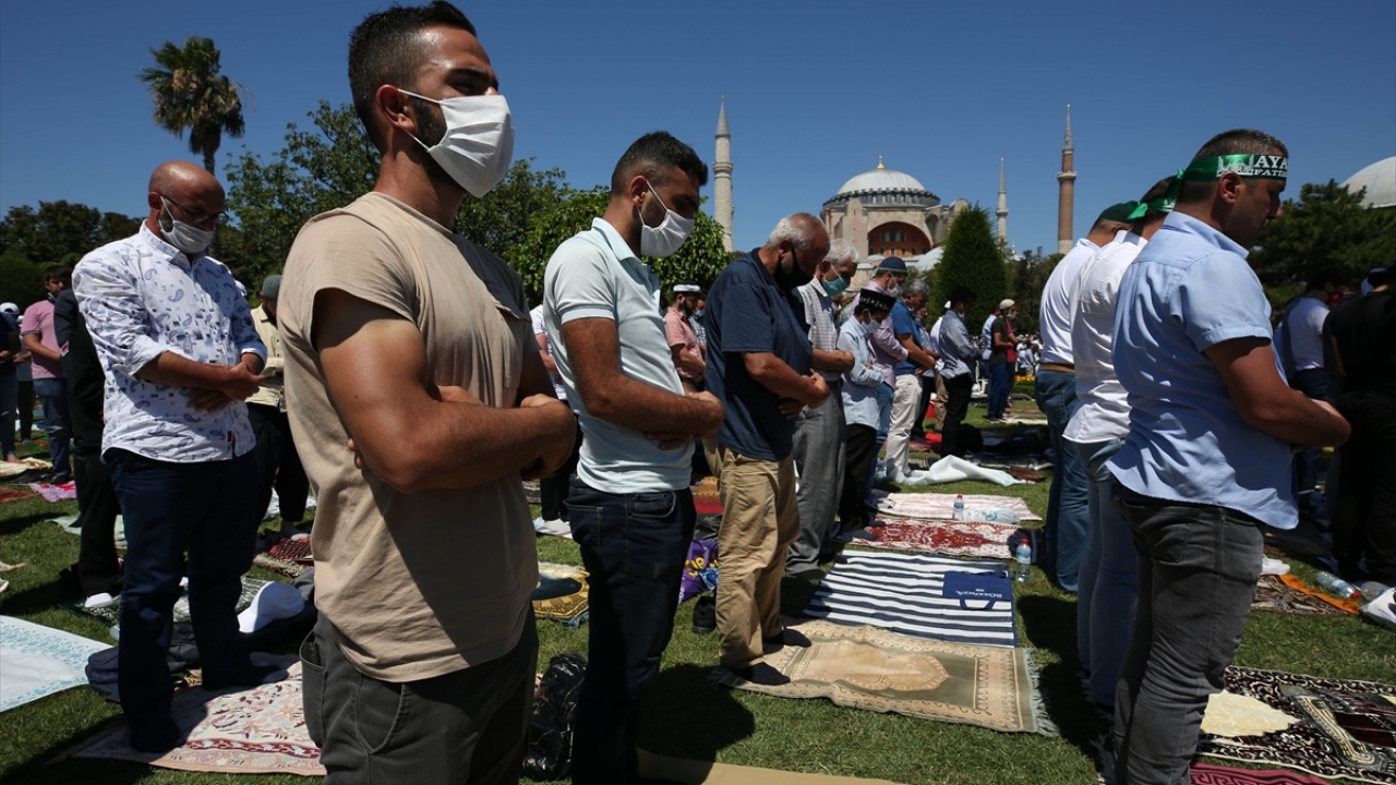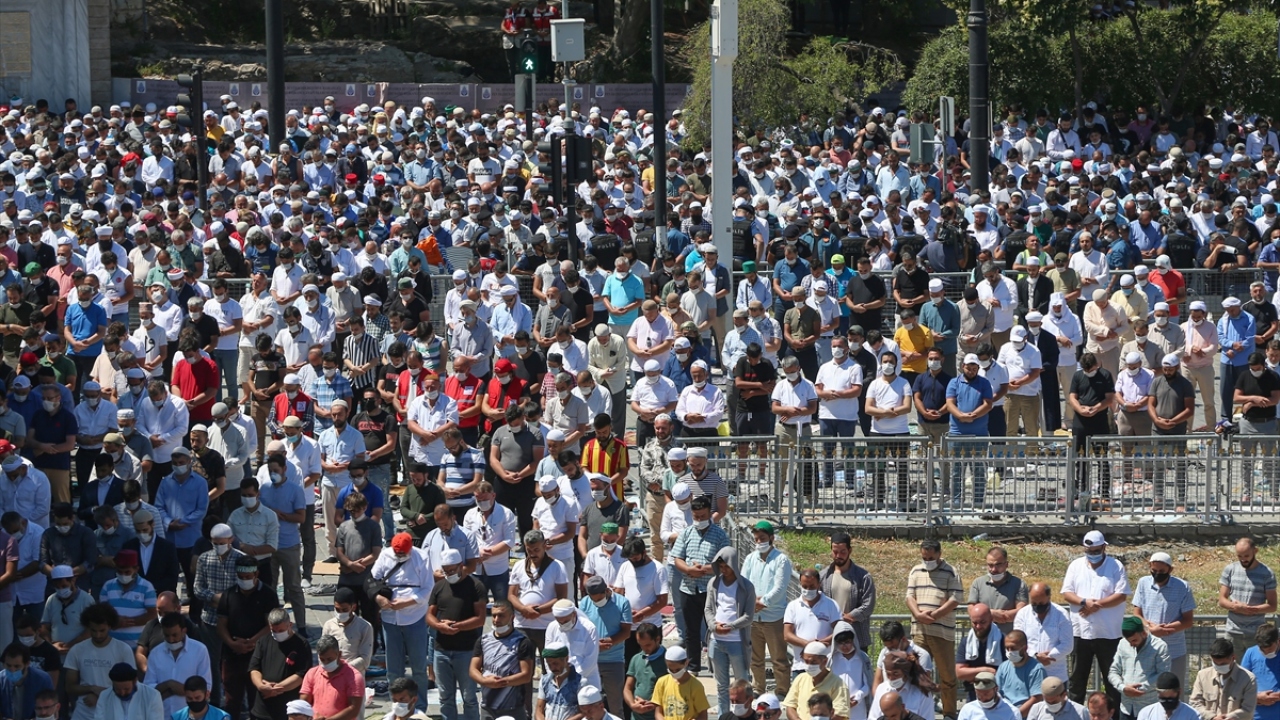 Cumhurbaşkanı Recep Tayyip Erdoğan, saat 12.00 sıralarında Ayasofya Meydanı`na gelmesinin ardından camiye giriş yaptı.