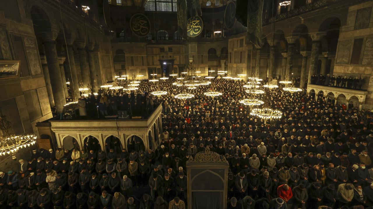 Ayasofya Camii içine sığmayan cemaat dışarda namazlarını eda etti.