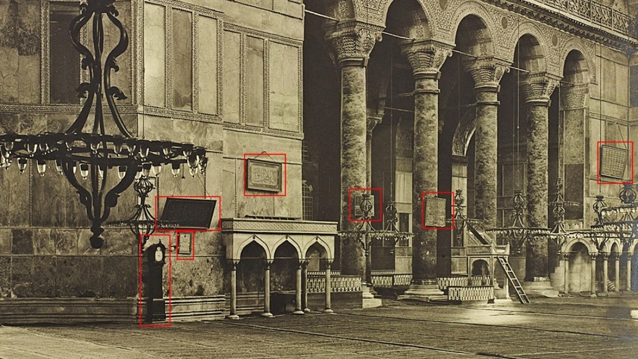 İstanbul'un fethedildiği 1453 yılından 1934'e kadar Ayasofya Camii'nde yer alan bazı hat, levha ve özel eşyanın müzeye çevrilmesinin ardından yapıdan uzaklaştırıldığı bildirildi.