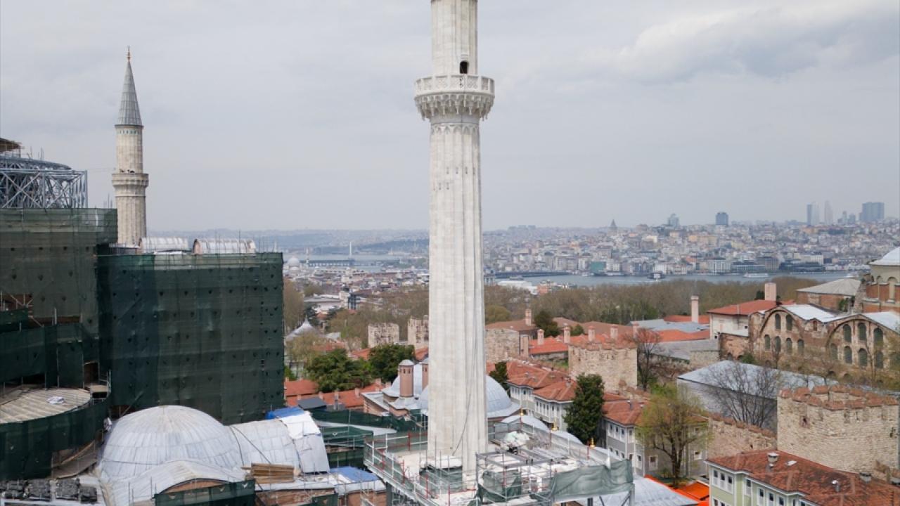 Kültür ve Turizm Bakanlığı Vakıflar Genel Müdürlüğünce sürdürülen Ayasofya-i Kebir Camii ikinci etap restorasyon çalışmaları kapsamında kuzeydoğu minaresine yönelik uygulamalar tamamlandı.