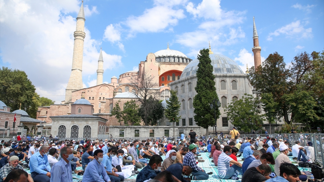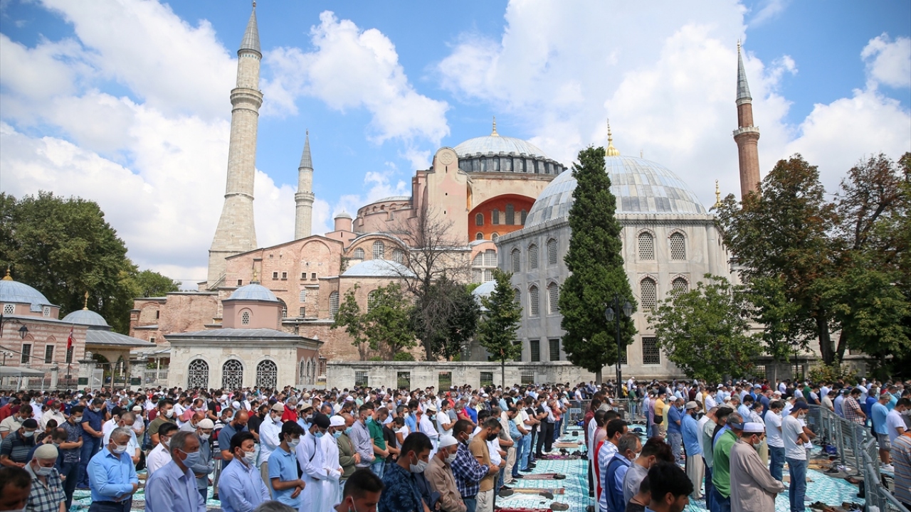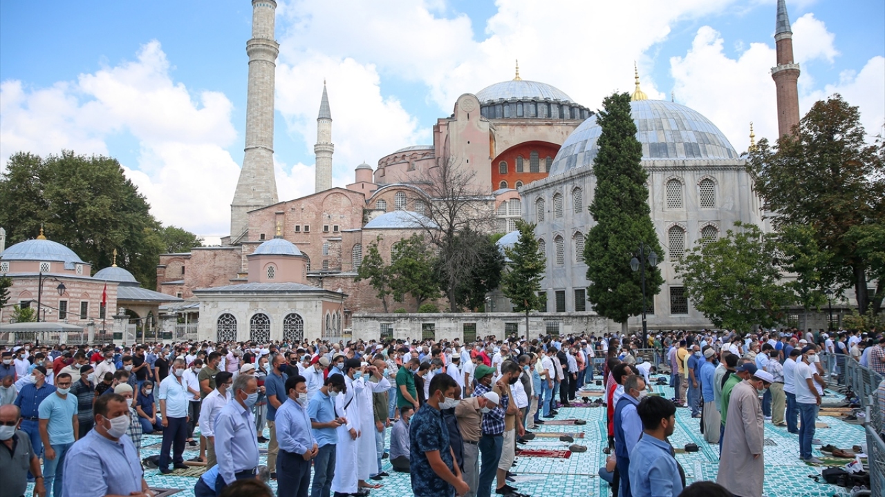 İbadete açıldığı 24 Temmuz`dan beri vatandaşların büyük ilgi gösterdiği Ayasofya-i Kebir Cami-i Şerifi`nde bugün kılınan cuma namazında da geniş katılım oldu.