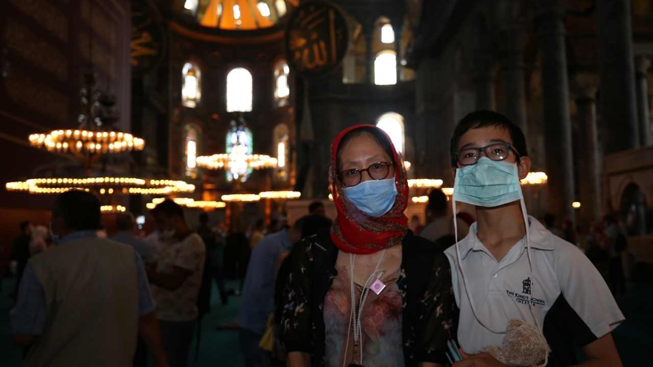 Oğlu Alvern Qıan ile birlikte Ayasofya`yı gezen İngiliz anne Ann Qıan, "Aslen Çinliyiz. İstanbul`a üçüncü gelişimiz ama Ayasofya`ya ilk kez geliyoruz. Gerçekten çok beğendim, içerisi çok büyüleyici. Buraya gelmekten son derece mutluyuz. Biz buraya gelmekten çok memnunuz. Başörtümü annemden aldım. İstanbul`u ziyaretimde ihtiyaç olduğunu hissettiğim için sürekli yanımda tutuyorum. Türkiye`de çok güzel arkadaşlıklarım ve aile dostalarım var. İstanbul`u her mevsimde deneyimledim. Dünyada çok farklı yerler var ama benim favori şehirlerimden biri İstanbul`dur. İstanbul`u çok sevdiğim için tekrar tekrar geliyorum." dedi.