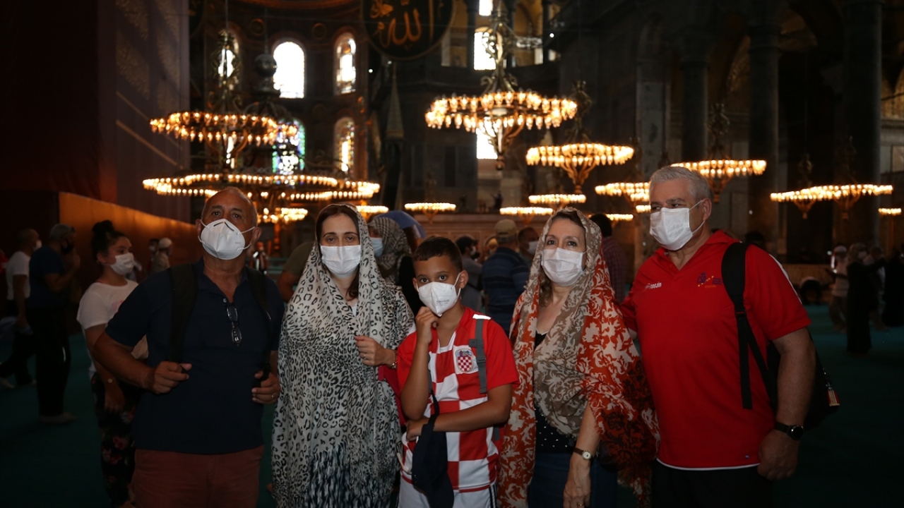 Tabletiyle bol bol fotoğraf çeken Alvern Qıan da "İki hafta önce haberleri gördük. Ayasofya`nın camiye çevrileceğini duyduk. Atmosfer ve renklerin ambiyansı çok güzel." ifadesini kullandı.