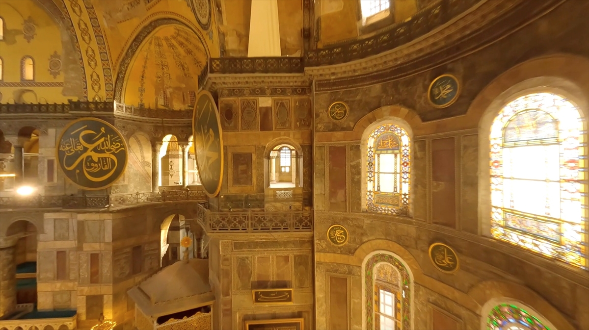 Caminin ihtişamını tek seferde görme imkanı tanıyan görüntüler, Ayasofya`nın geçmişten bugüne korunan dokusunu da izleyicinin dikkatine sunuyor.