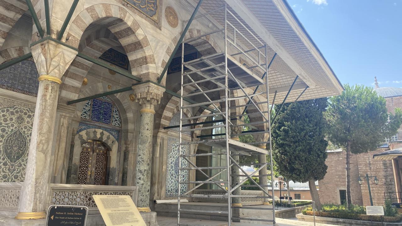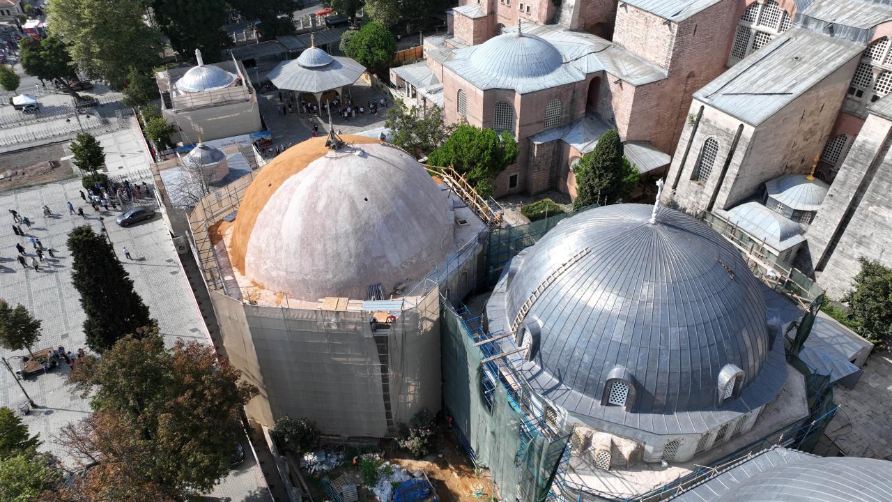 Ayasofya Camii’nin restorasyonu için Bilim Kurulu Üyesi Yüksek Mimar İhsan Sarı, Ayasofya gibi eserlerin ne kadar zamanda restore edileceğinin belli olamayacağını ancak tecrübesine dayanarak birkaç nesil sürebileceğini aktardı. Türbelerde yapılan restorasyon çalışması dron ile görüntülendi.