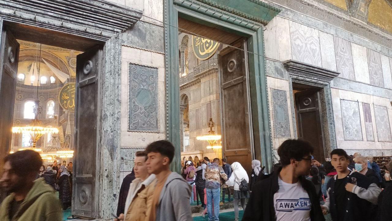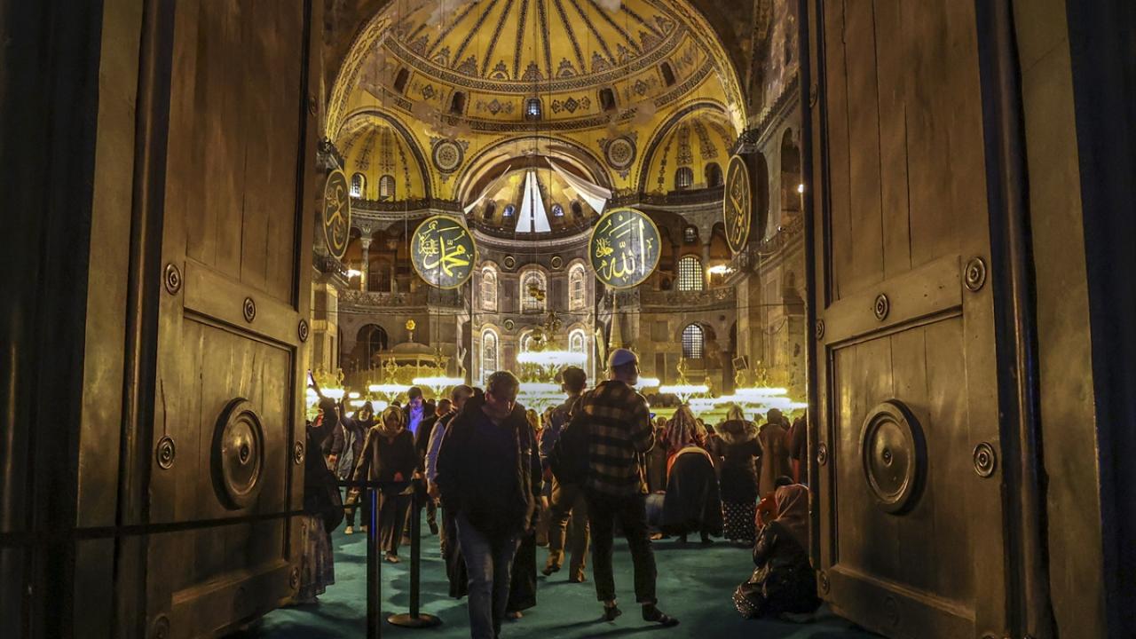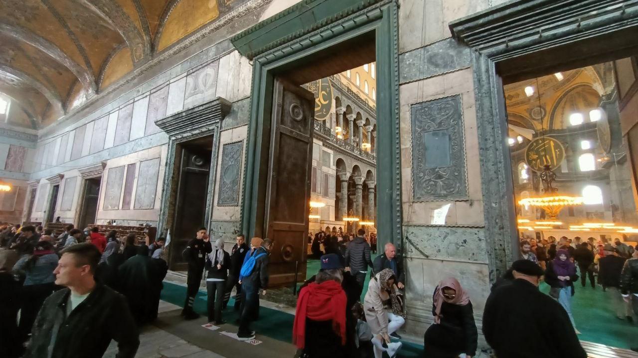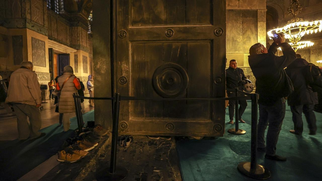 Vakıflar Genel Müdürlüğünden yapılan açıklamada, Ayasofya`nın imparator kapısında bulunan ahşap madalyonun, ahşabın olağan sürecinden yıprandığı, ufak bir dokunma ile de tahribatın oluştuğu belirtilmişti.