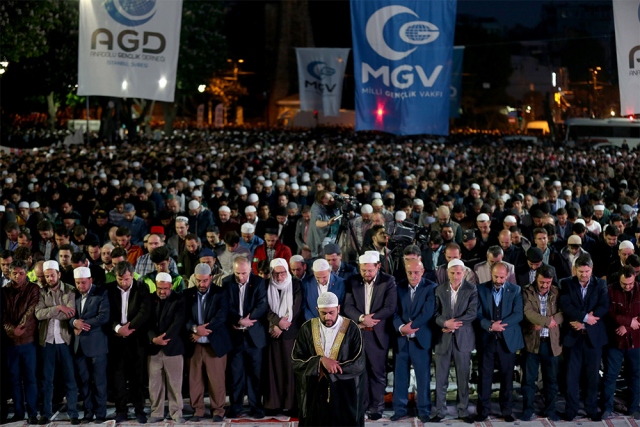 Anadolu Gençlik Derneği (AGD) ve Milli Gençlik Vakfı (MGV) tarafından İstanbul'un fethinin 564. yıl dönümü dolayısıyla Ayasofya’nın camiye dönüştürülmesi için Ayasofya Meydanı’nda "Fetih Namazı" etkinliği yapıldı. Gece yarısından itibaren meydanda toplanan grup, sabah namazı vaktinin girmesini bekledi. Vaktin girmesiyle Mescid-i Aksa İmamı Mohammed Ali El Abbasi cemaate sabah namazı kıldırdı, Şeyh Usame Er Rifai de dua ettirdi.