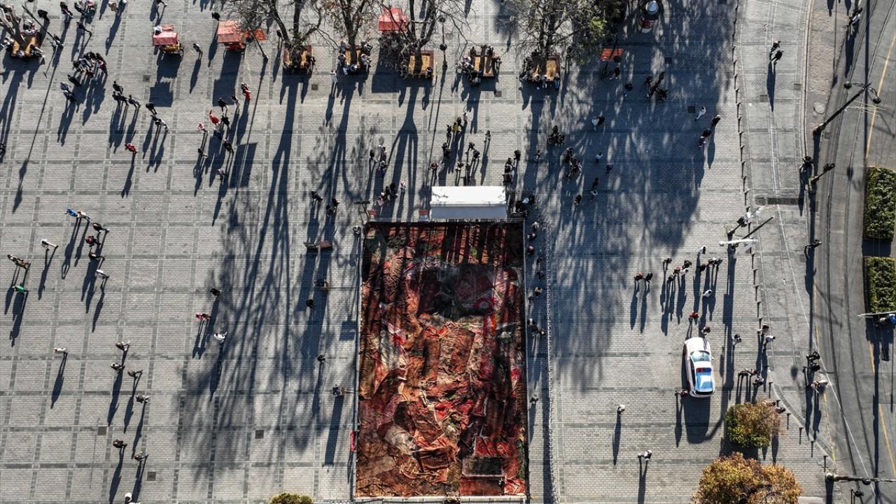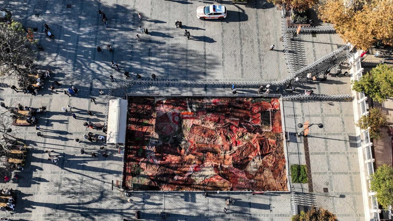 "Tarihi alanlarda gezerken karşılaşılan bu tarz bir çalışma, izleyenlerde farklı duygular oluşturdu. Bu ülkenin Gazze`ye olan derdini de ortaya koymuş olduk. Sergimiz kasım ayının sonuna doğru buradan ayrılacak. Niyetimiz farklı noktalarda bu serüveni devam ettirmek. Projede 105 halı kullandık. Bu çalışma özelinde 300 metrekarelik bir alan kapatıldı. Bu halıların hemen hemen hepsi 100 yılı aşkın gerçek halılar yani el dokuması. Kök boyalarla hazırlanmış. Kendisi de kadim bir sanat eseri aslında. Disiplinlerarası bir çalışma oldu. Yani bir sanat eserinin, farklı bir güncel ya da kavramsal sanat performansına dönüşmesi sağlanmış oldu. Büyük bir atölyede yaklaşık 8 kişilik bir ekiple bu çalışmayı sürdürdük. Toplamda da 25 günlük bir süre, İstanbullulara, dünyanın farklı ülkelerinden gelen insanlara ve Türkiye`deki sanatseverlere hatta yoldan geçen herkese bir ibretlik oluşturacak."