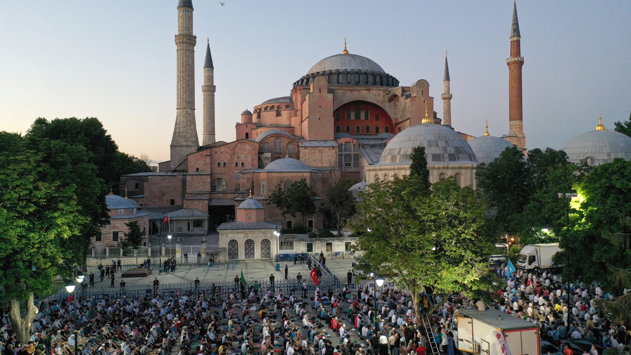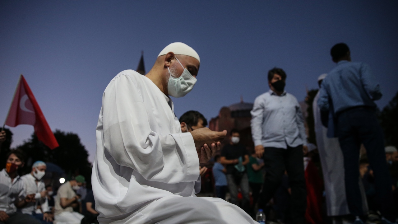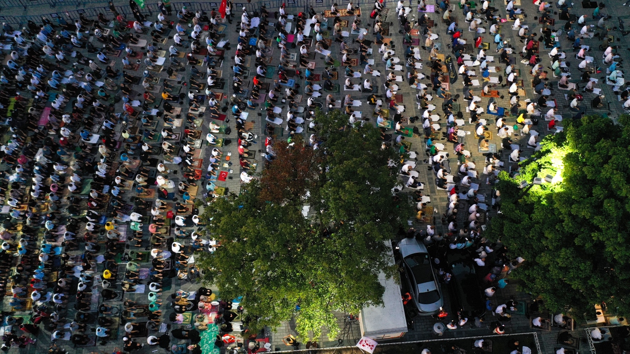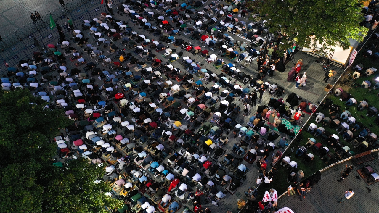 Ayasofya'nın yeniden ibadete açılmasının ardından Ayasofya Meydanı'na gelen vatandaşlar burada akşam namazı kıldı. Kılınan namazın ardından Ayasofya için dua edildi.