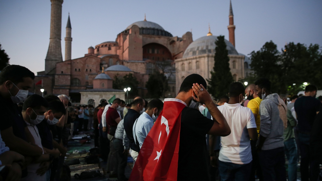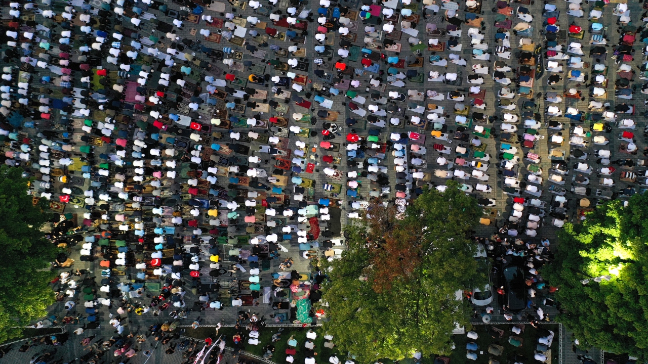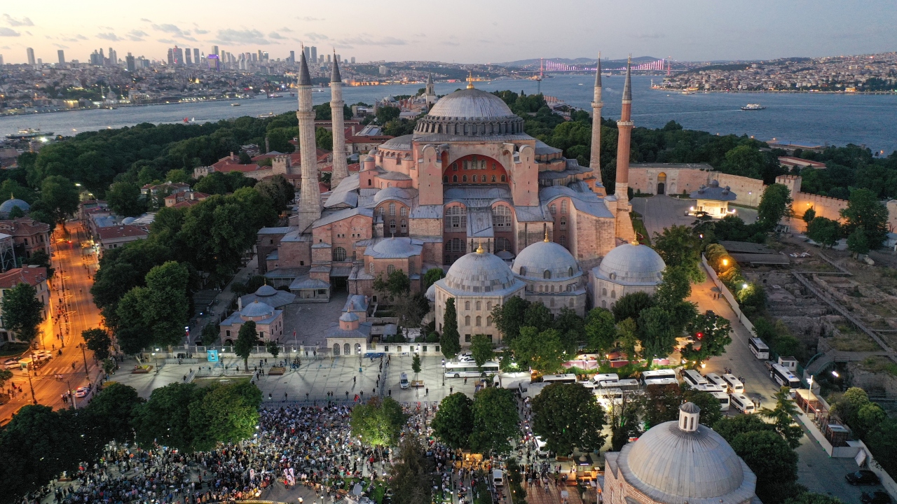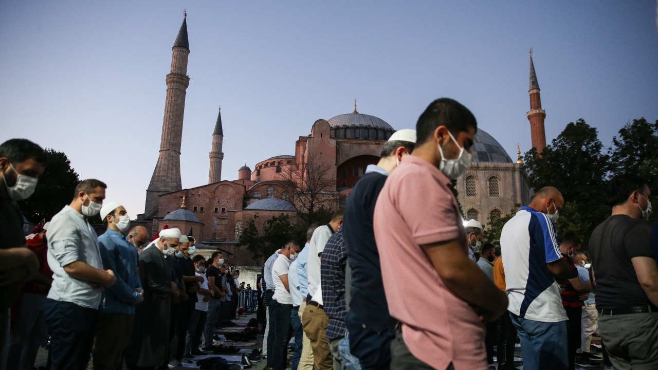 Ayasofya'nın yeniden ibadete açılmasının ardından Ayasofya Meydanı'na gelen vatandaşlar burada akşam namazı kıldı. Kılınan namazın ardından Ayasofya için dua edildi.