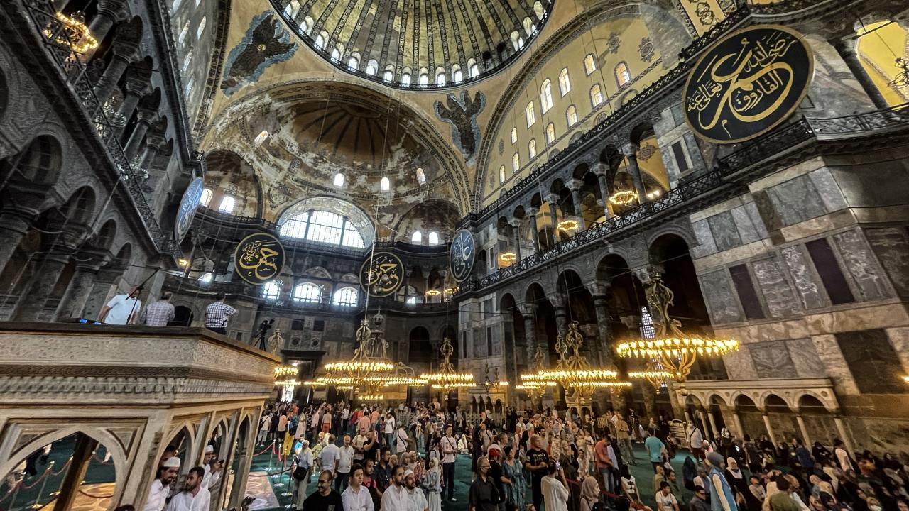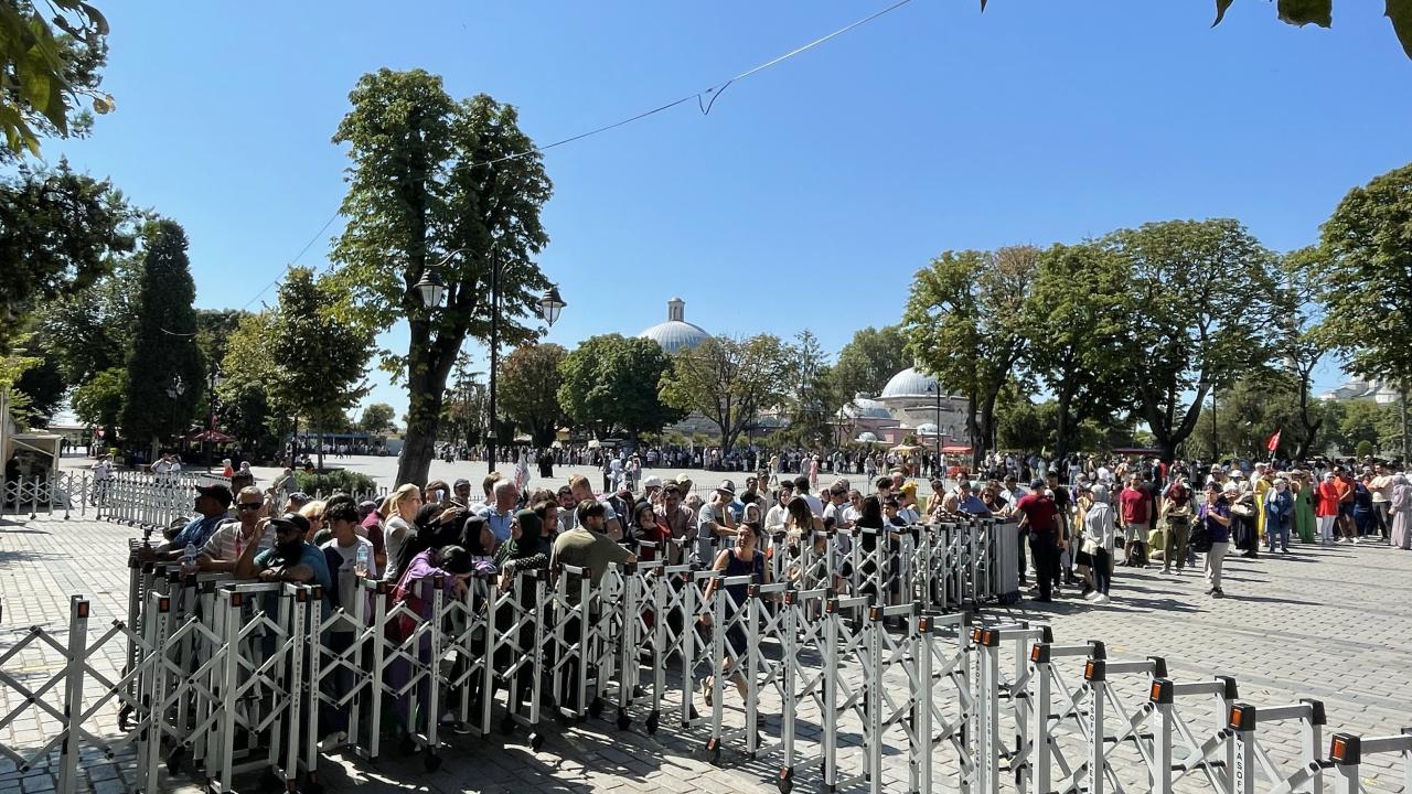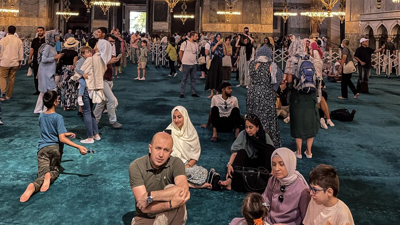 Açılışının ikinci yıl dönümünde de binlerce kişiyi ağırlamaya devam eden Ayasofya, İstanbul`a gelen turistlerin ilk duraklarından biri olmayı sürdürüyor. Zaman zaman önünde uzun kuyruklar oluşan camideki ziyaretçilerin kimi dualar ederken, kimileri manevi havayı soluyor.