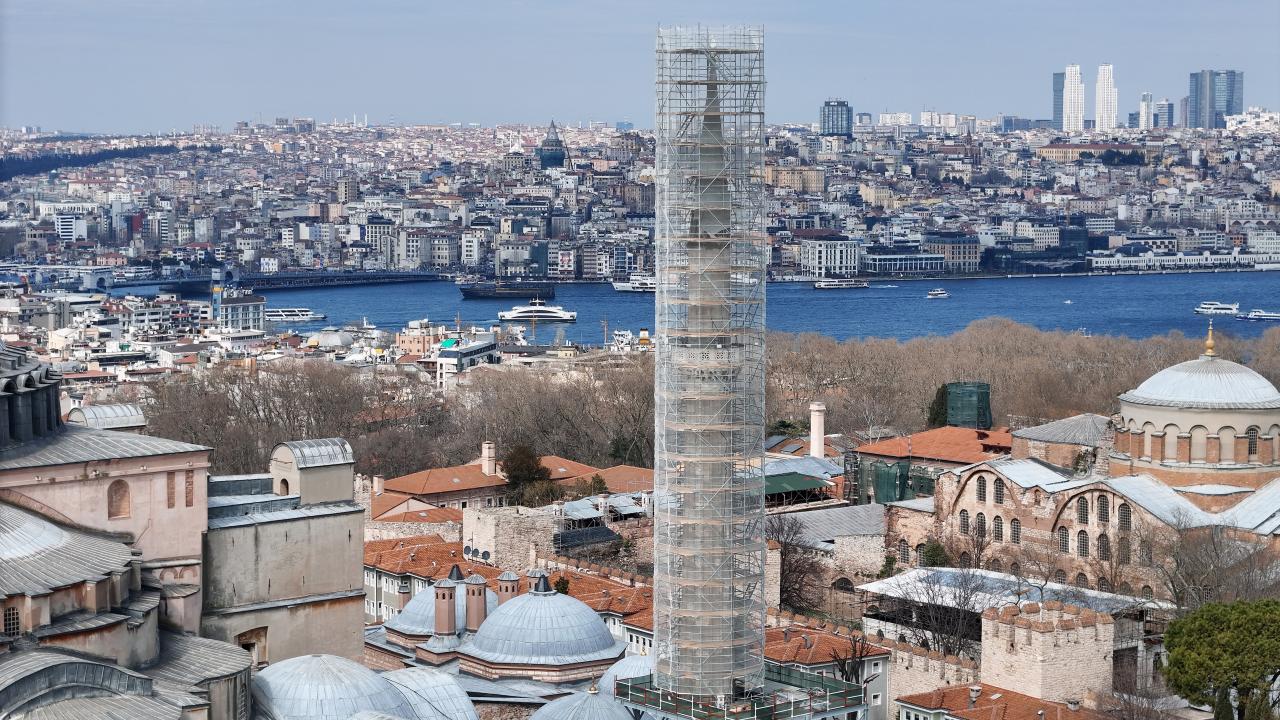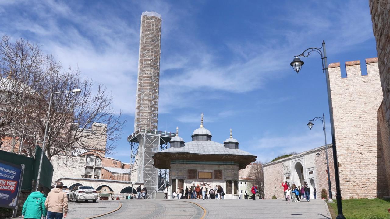 Minare platformu üstüne iskele kuruldu. 23 Şubat tarihli bilim kurulu kararında tamamlanan minare iskelesine güvenlik amaçlı 1.5 santim boşluklu yanmaz file sarılmasına karar verildi. Minarede Ayasofya Bilim Kurulu ve Koruma Bölge Kurulu kararları doğrultusunda şerefeye kadar söküm yapıldı.