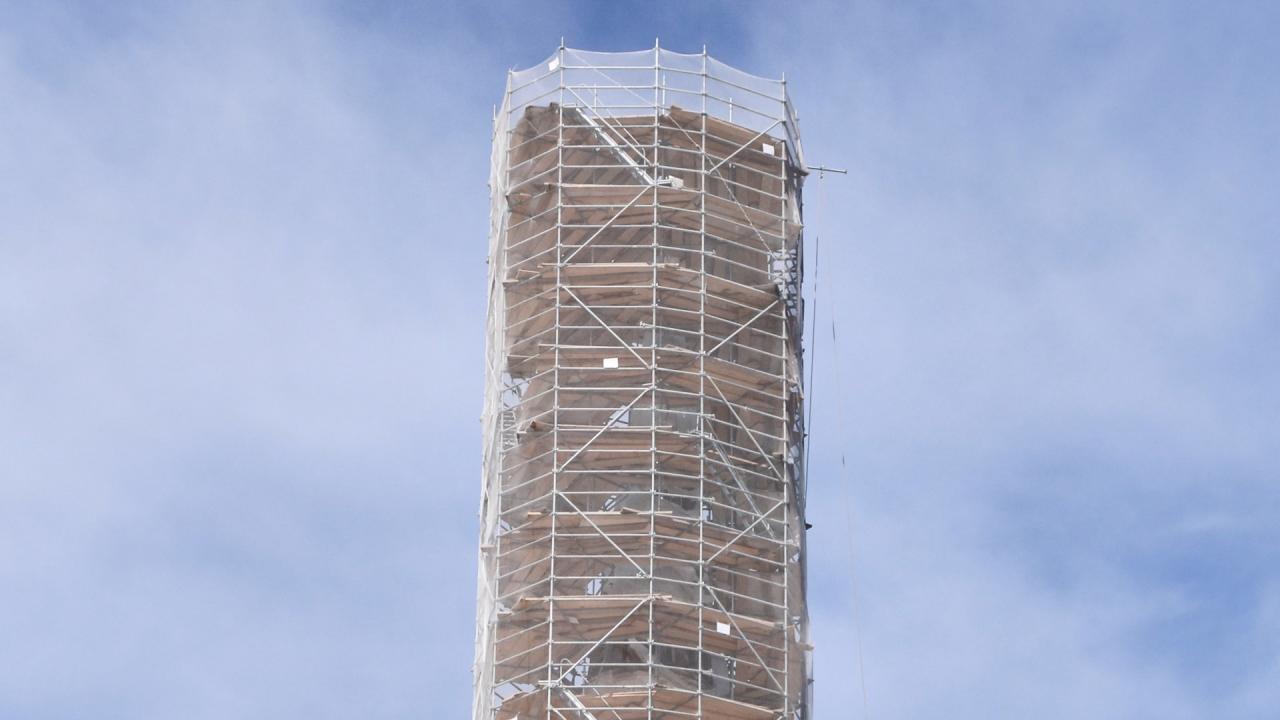 Minaredeki alemin sökülmesinin ardından minarenin hasarlı kurşun örtüsü ve altındaki eski keçeler söküldü.