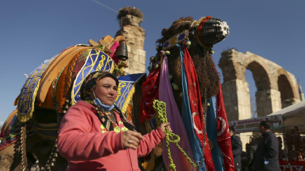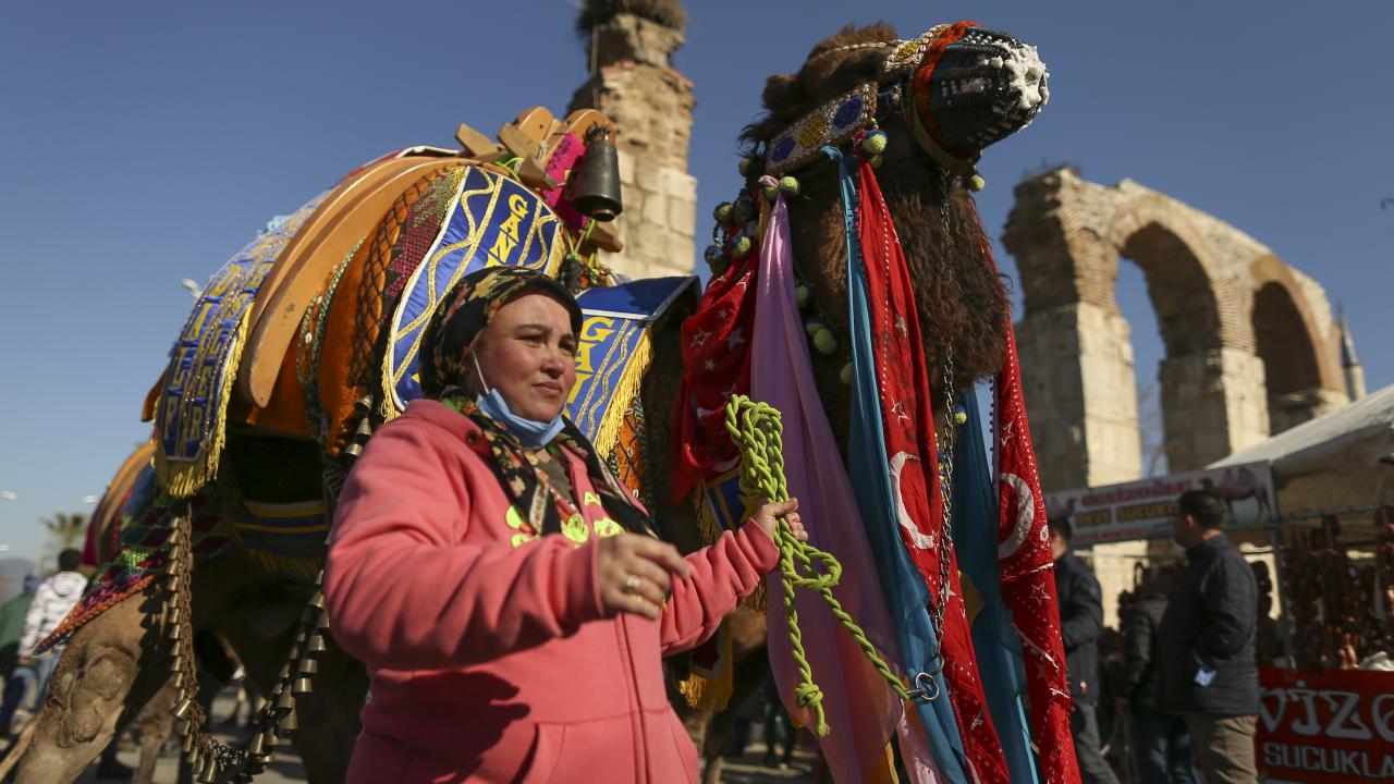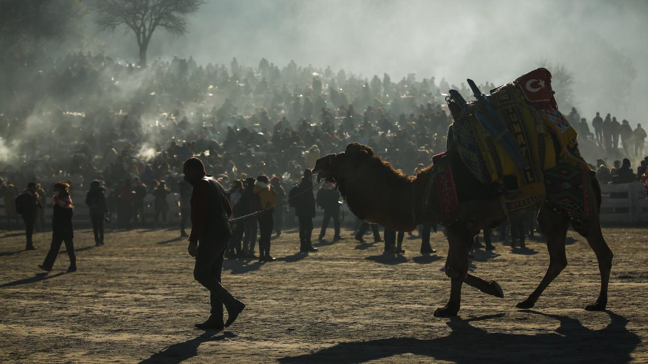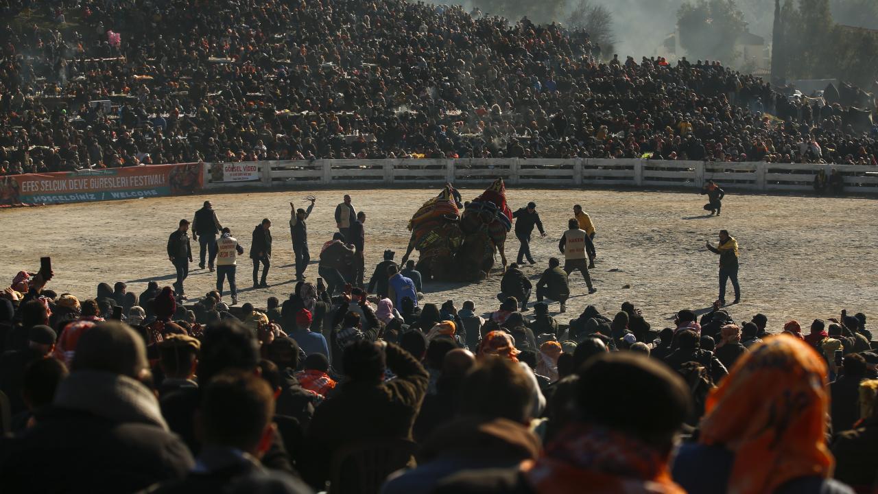 Efes Selçuk Deve Güreşleri Festivali'nde develer kıyasıya mücadele etti.
