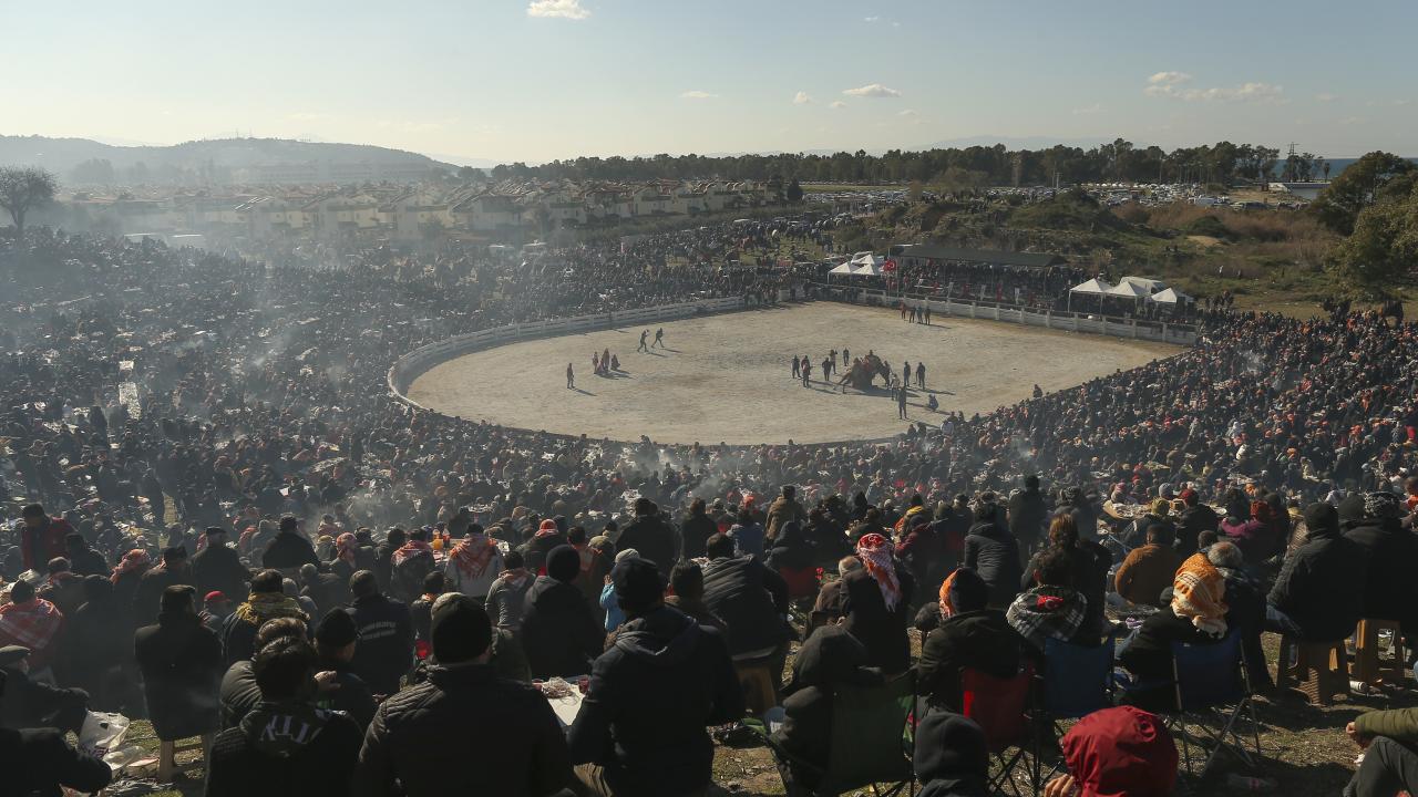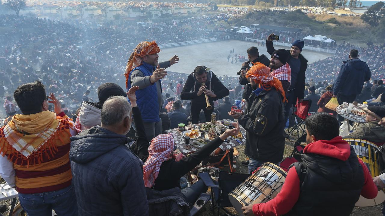 Güreşleri, binlerce kişi tribünlerden ve sahanın kenarına park ettikleri kamyon ile traktörlerin kasalarına çıkarak ilgiyle izledi.