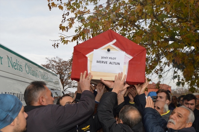 Aydın`da eğitim uçağının düşmesi sonucu hayatını kaybeden pilot adayı Merve Altun, memleketi Afyonkarahisar`ın Sultandağı ilçesinde defnedildi.