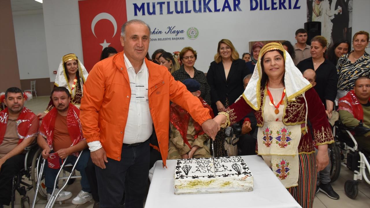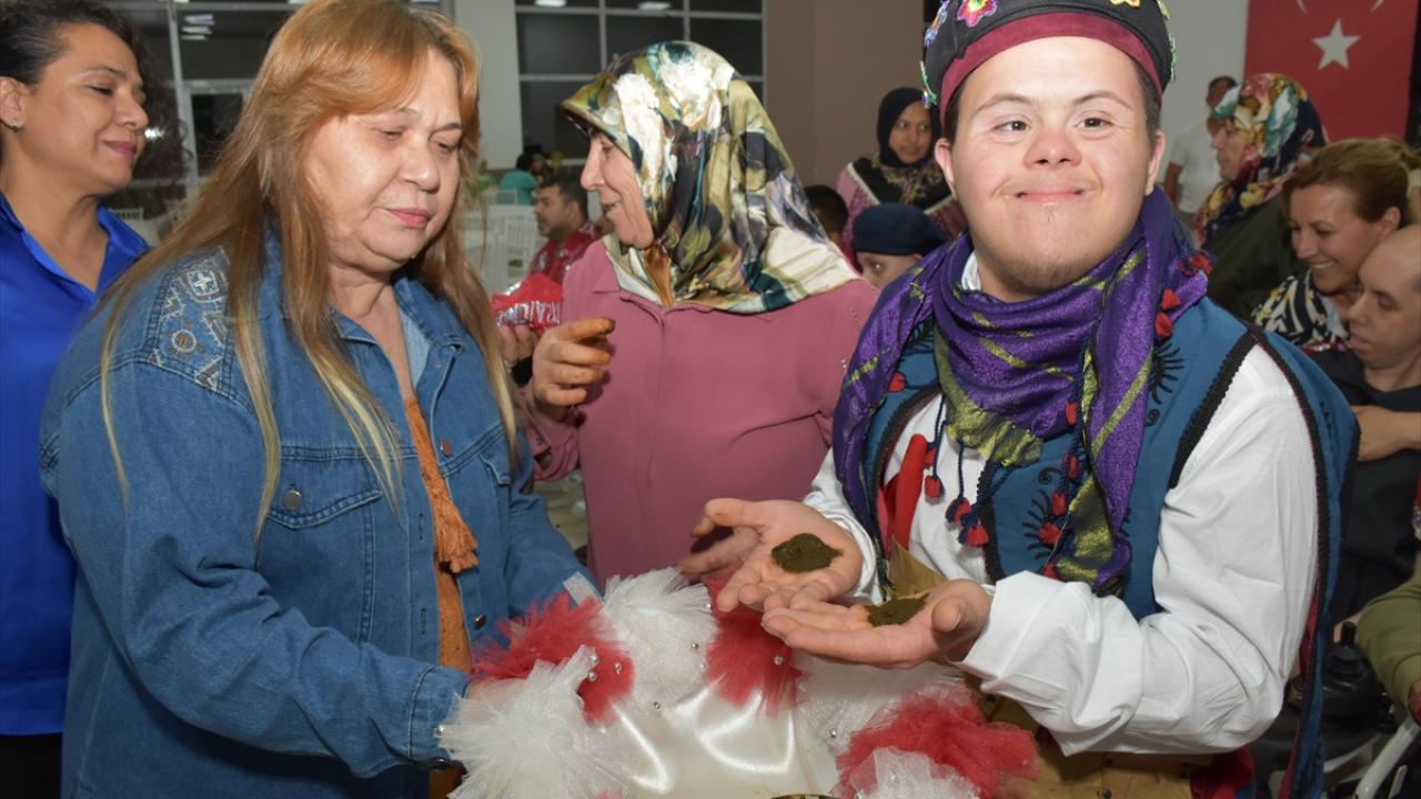Zeybek gösterisinin ardından üzerinde "En büyük asker bizim asker" yazılı pasta kesildi, engellilerin ellerine kına yakıldı.