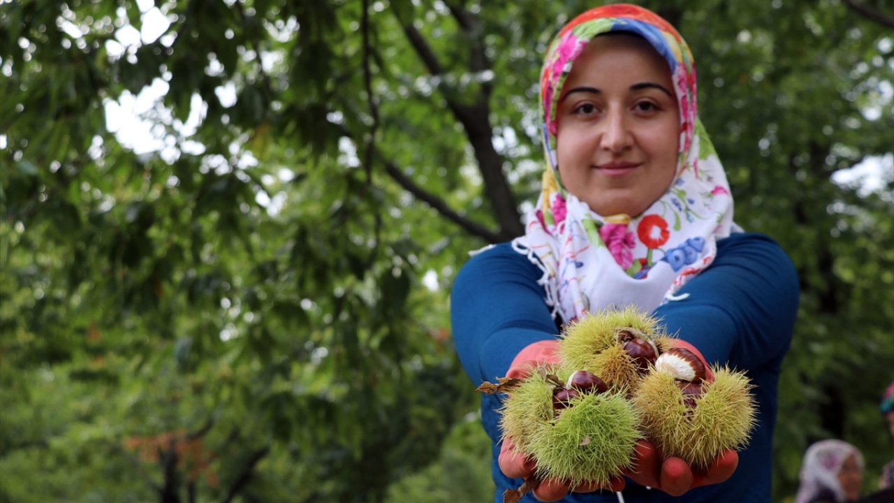 Raziye Bayrak ise "20 yıldır kestane işiyle uğraşıyorum. İşimiz, kazancımız hepsi bu. Elimizde eldiven olsa da zaman zaman elimize diken batıyor. Zorlanıyoruz. Özellikle çok eğildiğimiz için belimiz çok ağrıyor ama yapacak bir şeyimiz yok. Güle eğlene ekmeğimizi kazanıyoruz." diye konuştu.