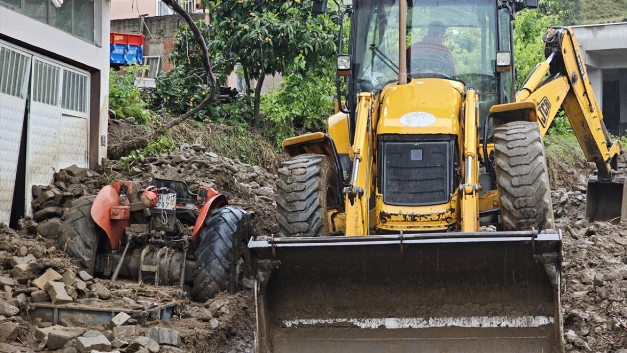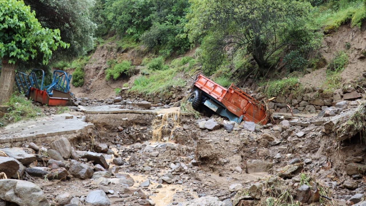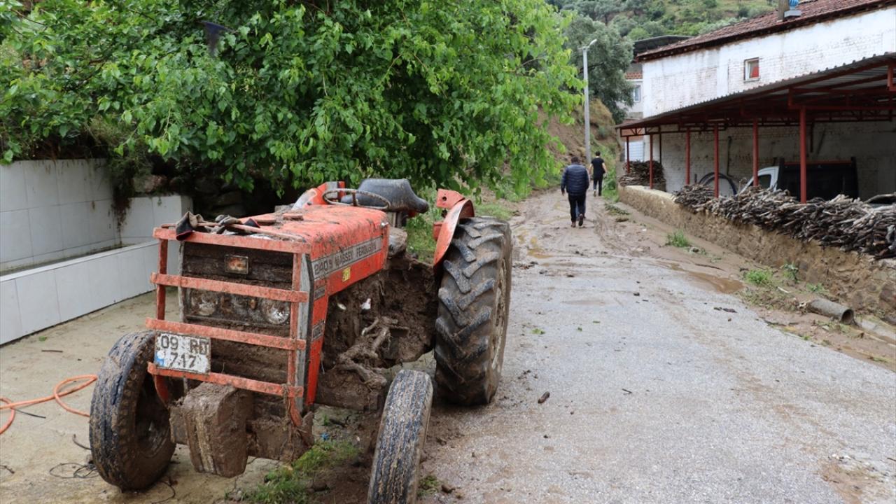 Nazilli`de ise Demirciler Mahallesinde yolun bir kısmı çöktü. Traktör ve bir motosiklet sel sularında sürüklendi.
