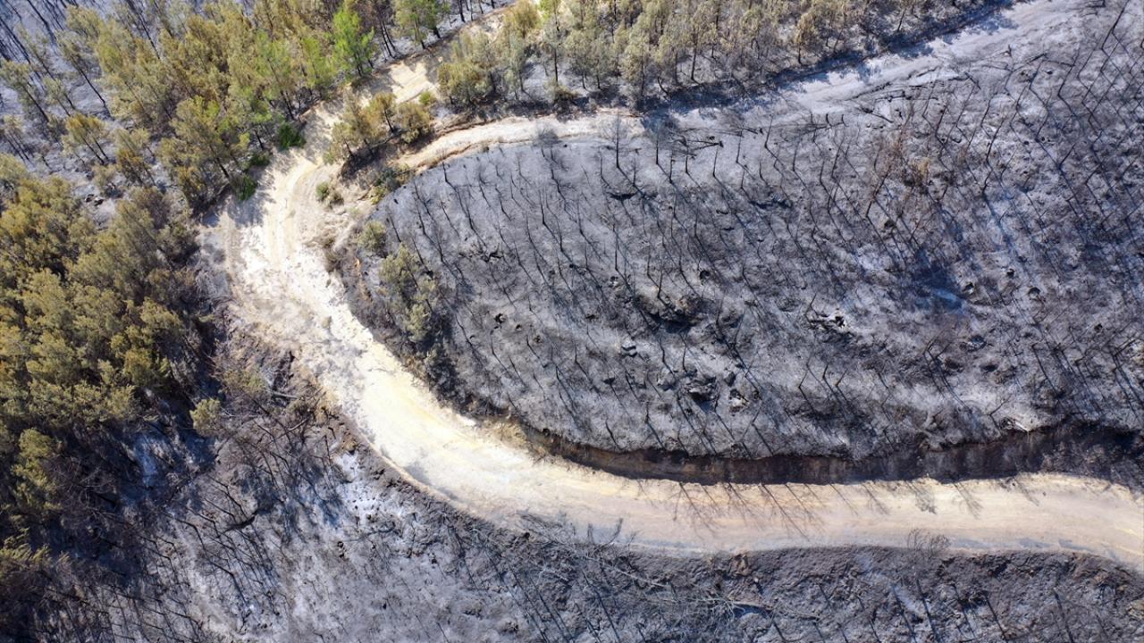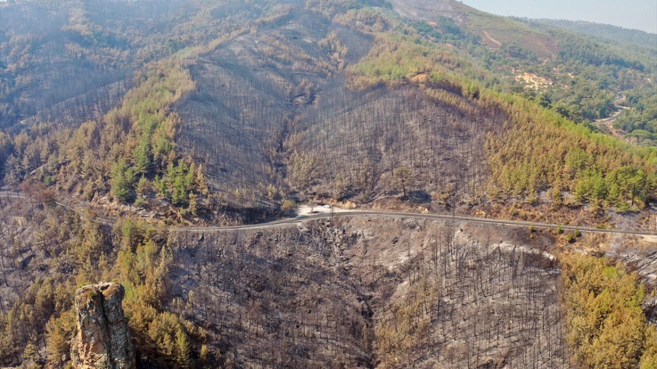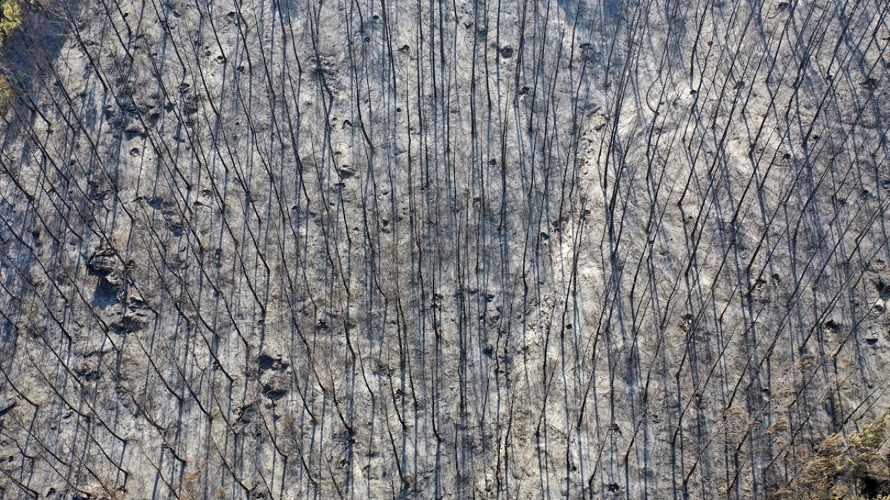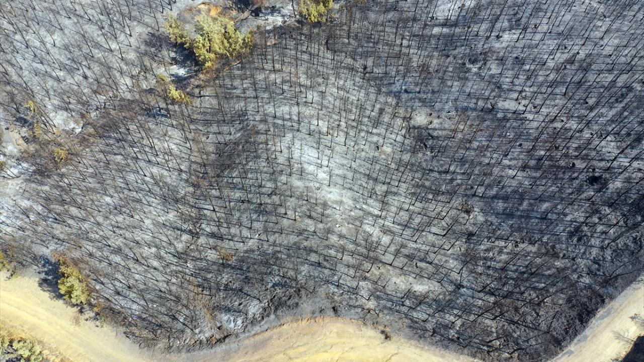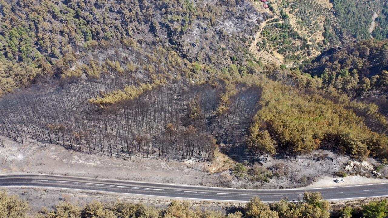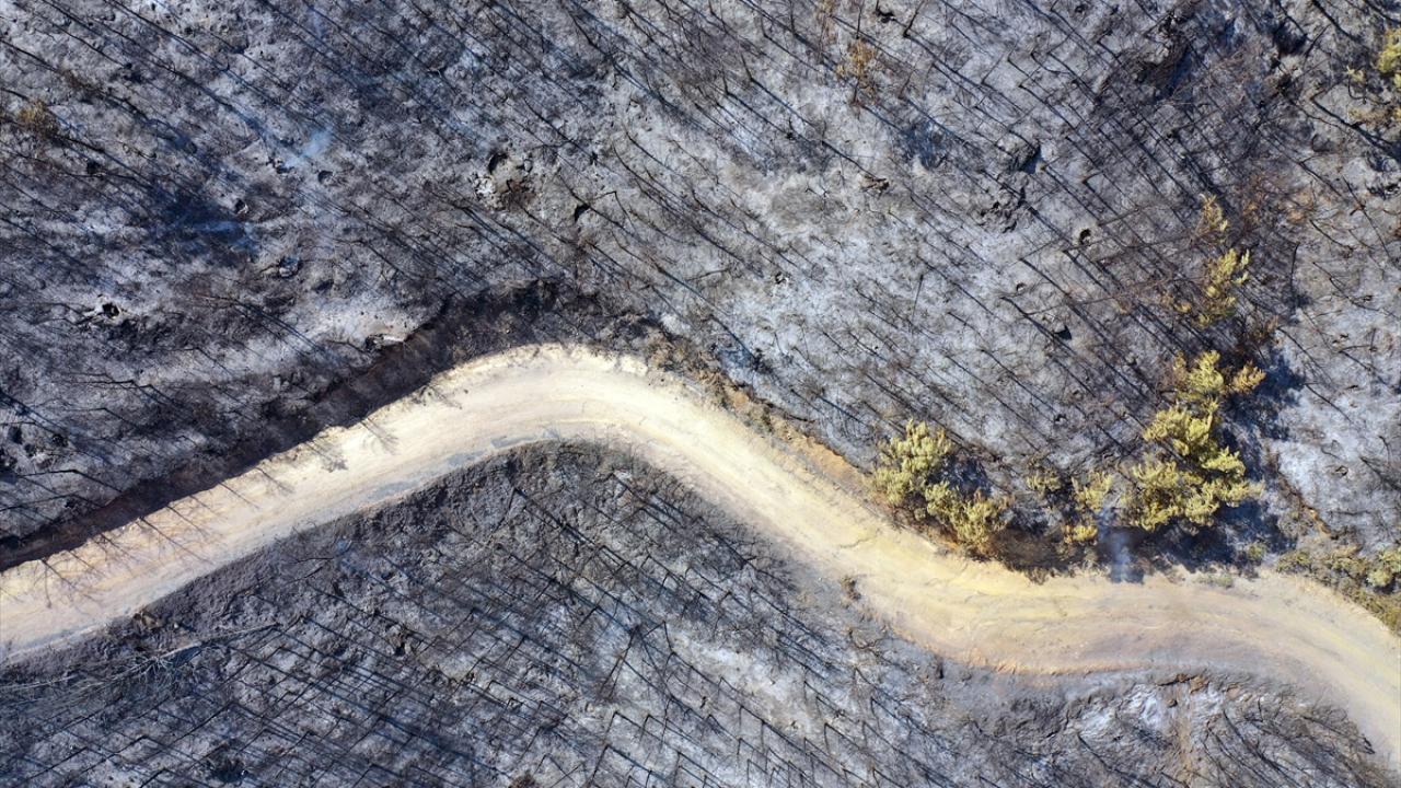 Aydın'daki orman yangınında yanan alanlar görüntülendi
