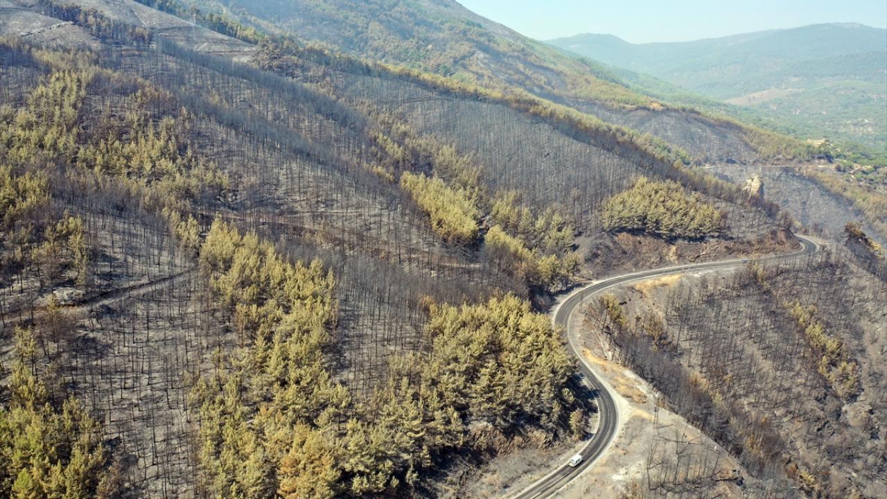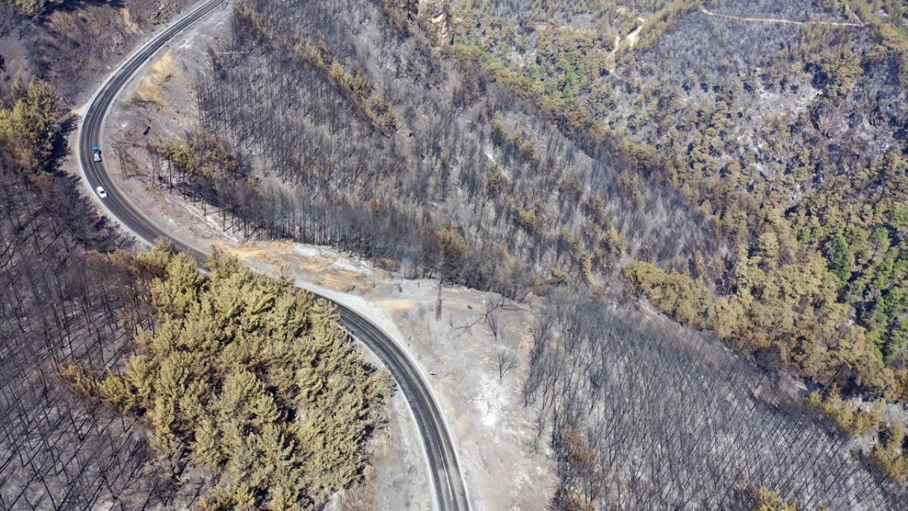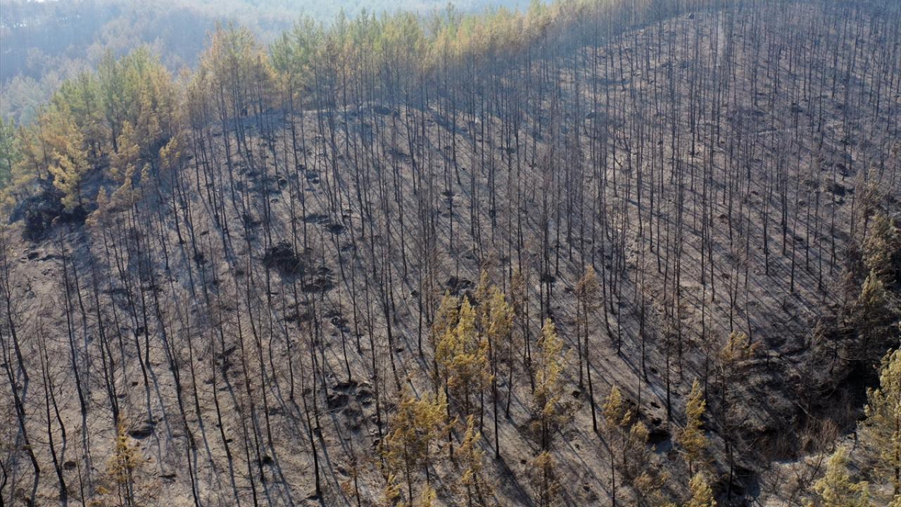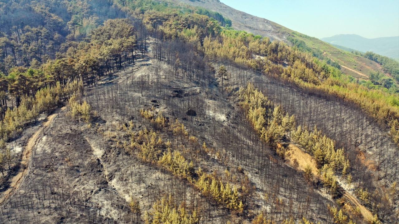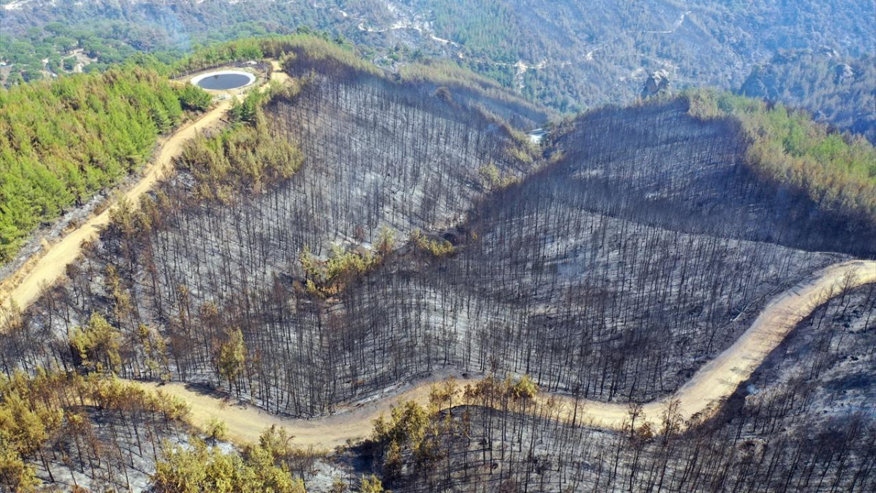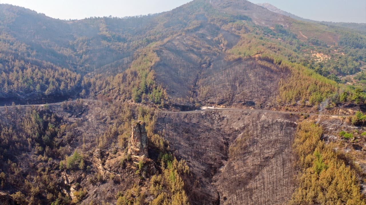 Aydın'daki orman yangınında yanan alanlar görüntülendi
