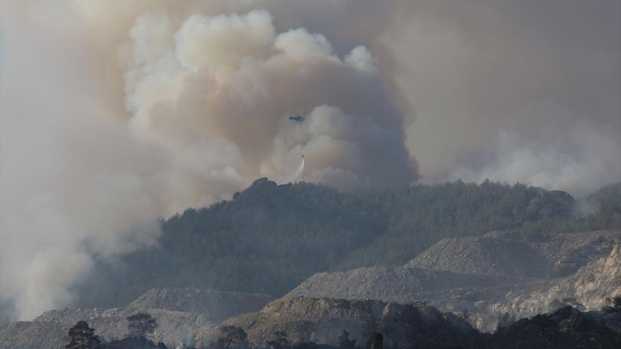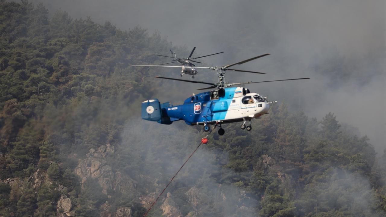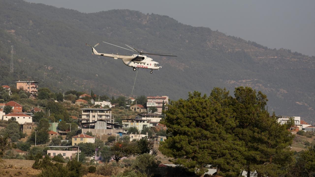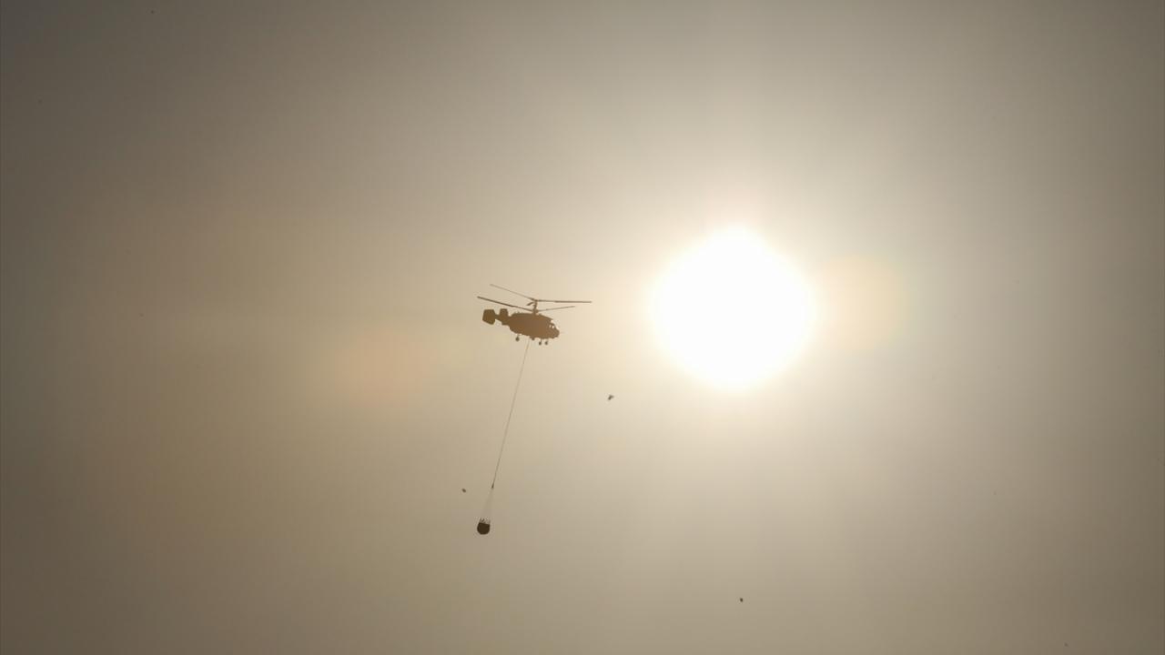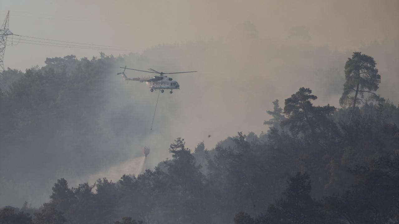 Bölgedeki 6 mahallenin belirli bölümlerinin tahliye edildiği yangını söndürme çalışmalarında 6 helikopter ve çok sayıda arazöz kullanılıyor.