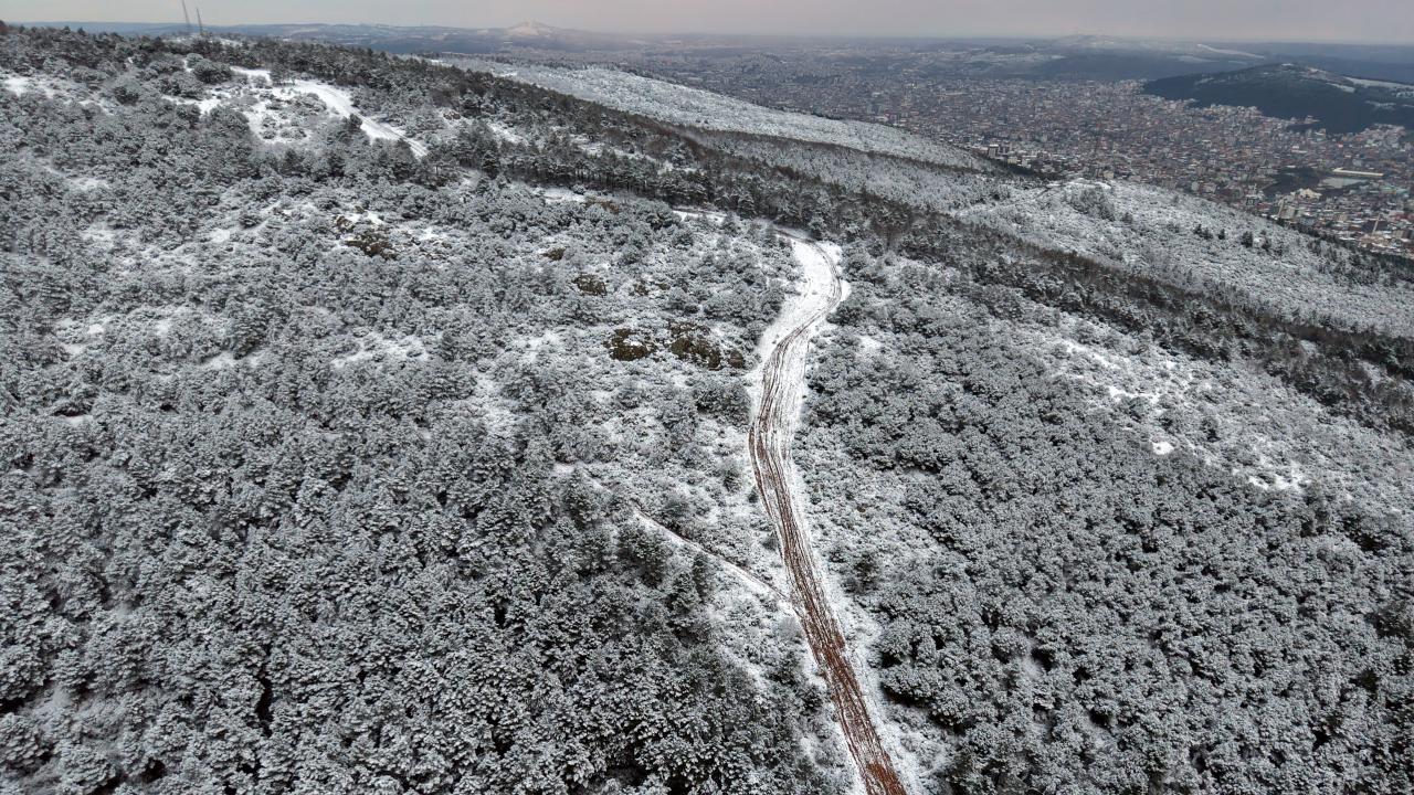 Aydos Ormanı'ndaki kar havadan görüntülendi