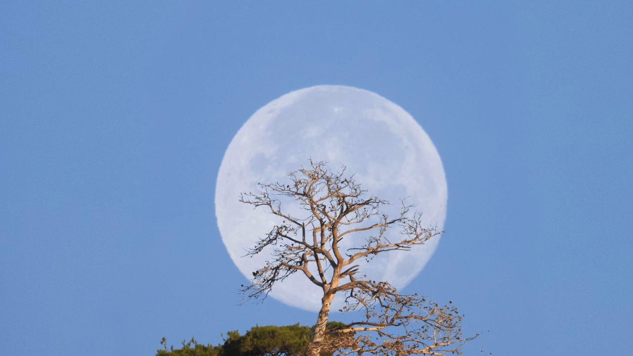 ‘Kunduz Ayı’ olarak belirtilen Kasım ayında ise İzmir Yaman Dağı’nda kaydedilen görüntüde bir ağacın zirvesinde yerleşen dolunay görüldü.