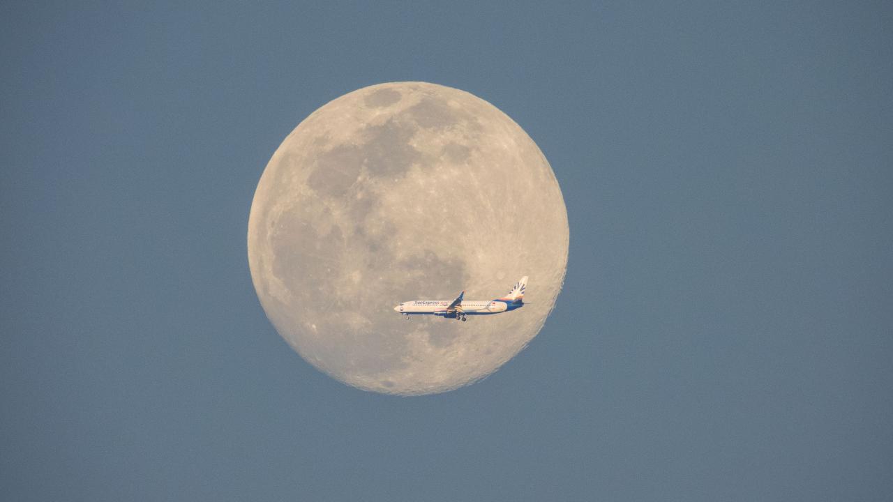 Turan ‘Solucan Ayı’ olarak isimlendirilen Mart ayında ise büyük bir yolcu uçağını dolunayın önünden geçerken yakalamayı başardı.