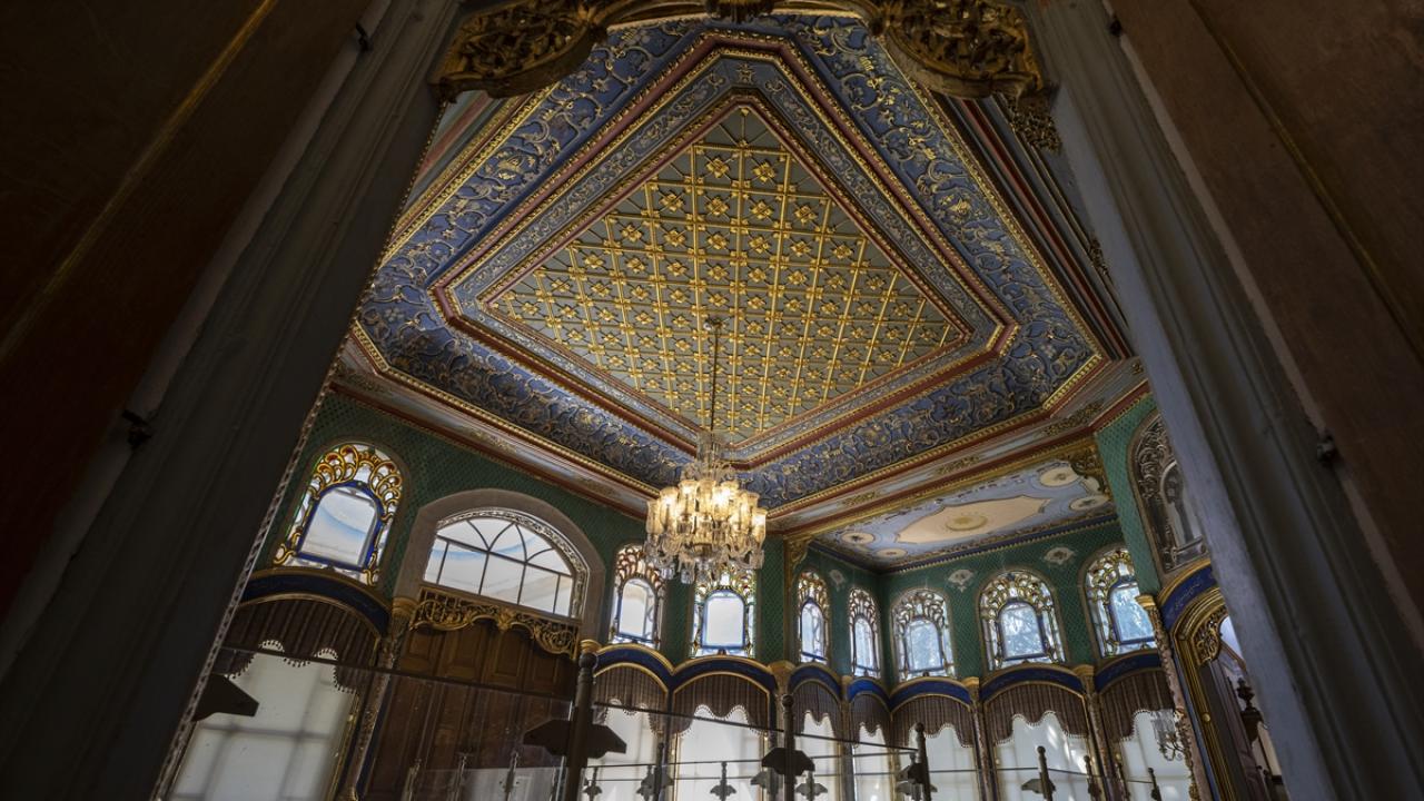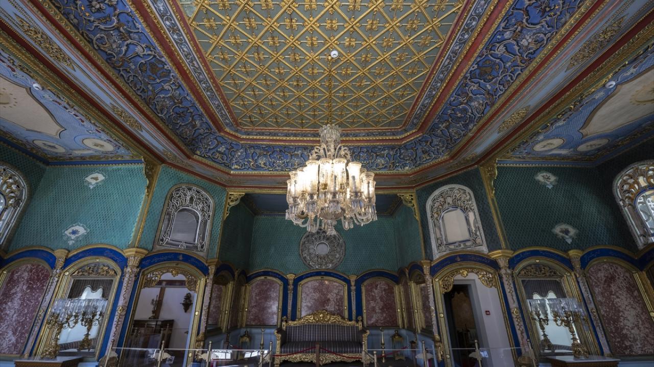 Dronun kasrın giriş kapısından başlayarak kaydettiği görüntülerde, Divanhane, Arz Odası, ünlü kurum ve kuruluşları tarafından hediye edilen müzik aletlerinden oluşan "Türk çalgıları sergisi" yer aldı.