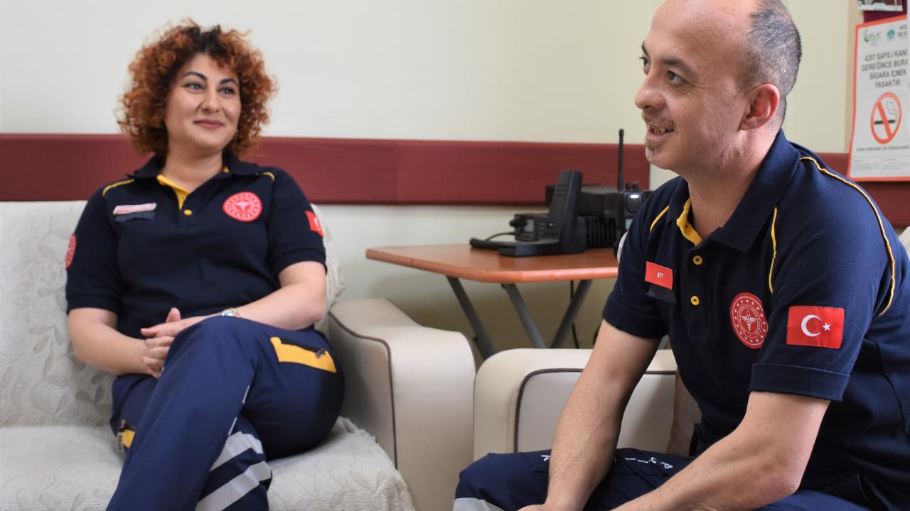 Çift, aynı ambulansta hastaların imdadına birlikte yetişiyor.