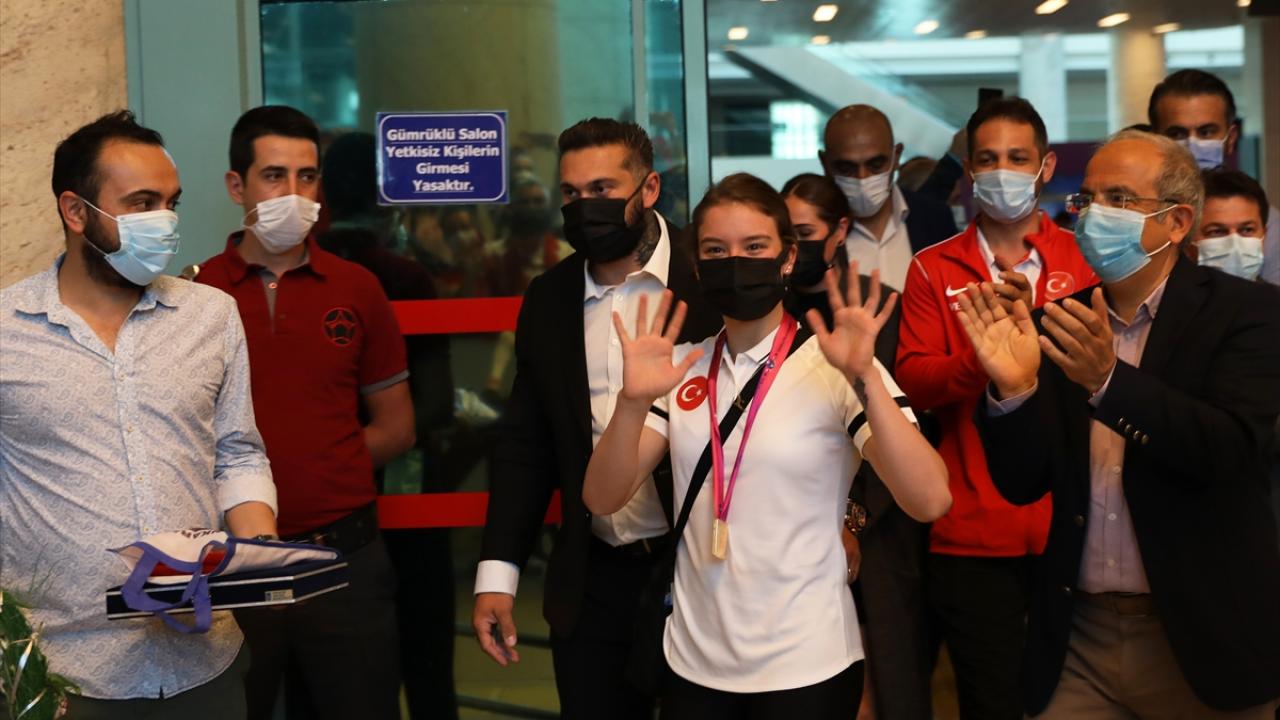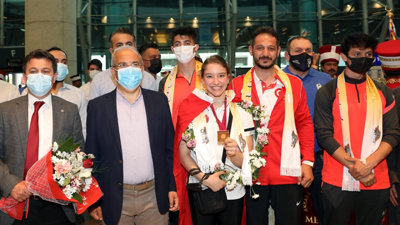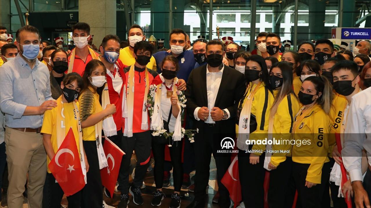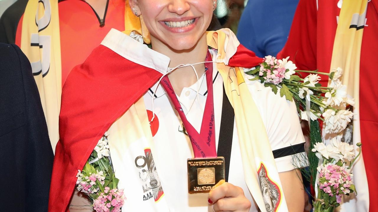 Azerbaycan'ın başkenti Bakü'de düzenlenen Aerobik Cimnastik Dünya Şampiyonası'nda tek kadınlar büyükler kategorisinde altın madalya kazanan mili sporcu Ayşe Begüm Onbaşı yurda döndü.