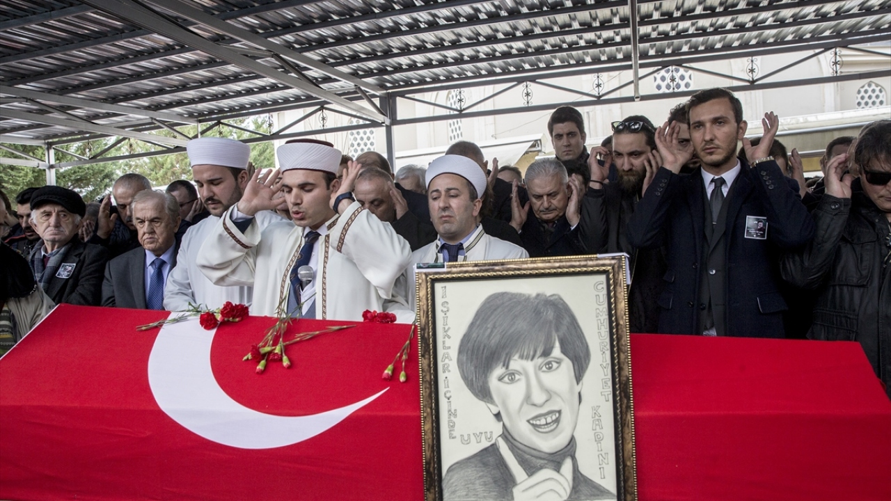 Cenaze törenine Gruda`nın kızı Elvan Gruda (sağ 2) ve eski eşi Yılmaz Gruda (solda) da katıldı.