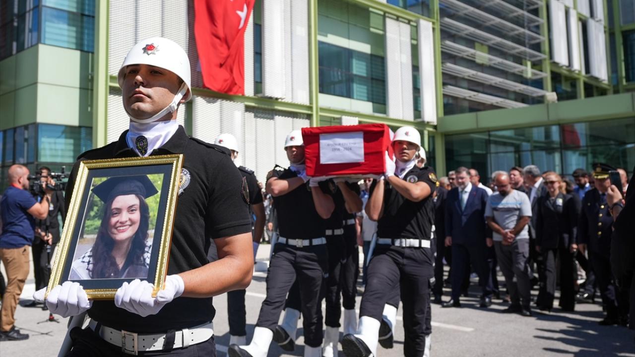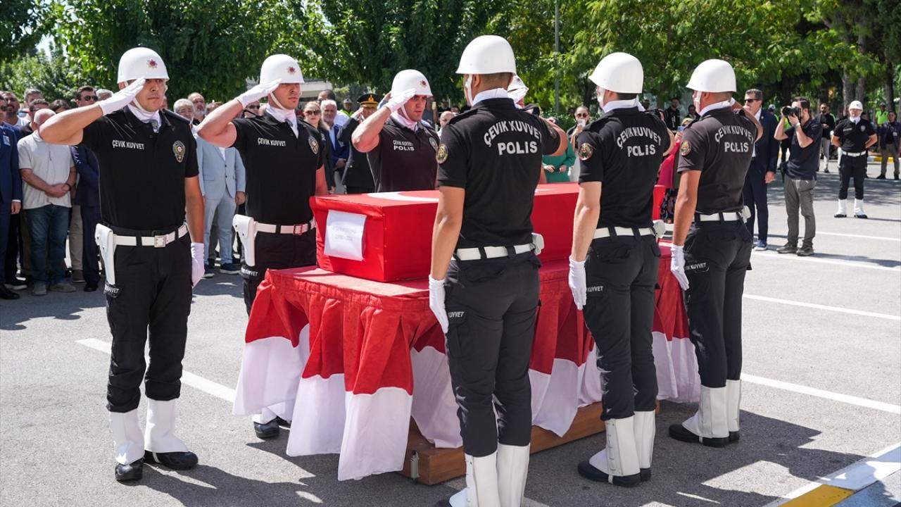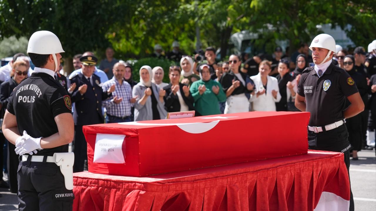 İzmir Adnan Menderes Havalimanı`nda düzenlenen törende, Eygi`nin Türk bayrağına sarılı naaşı polis mangası tarafından tören alanına taşındı.