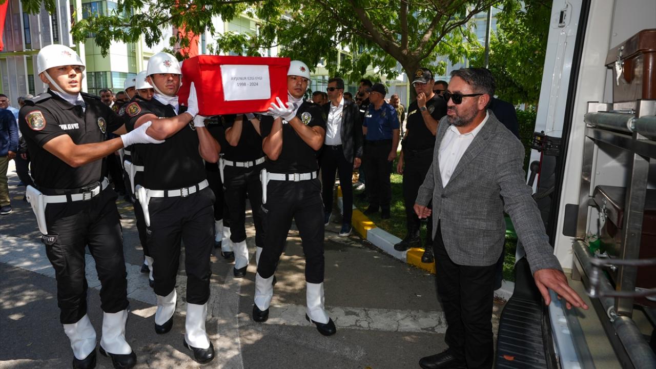 Polis mangası tarafından cenaze aracına kadar taşınan Eygi`nin naaşı, İzmir Adli Tıp Kurumu morguna götürüldü.