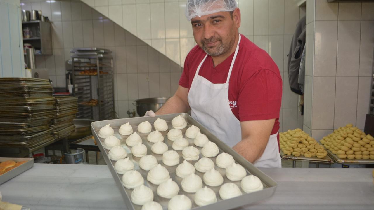 Sıkma torbasıyla damlatma usulüyle ceviz büyüklüğünde bezeler tepsilere yerleştiriliyor. Fırında 45 dakika kadar pişirilen bezeler soğutuluyor.